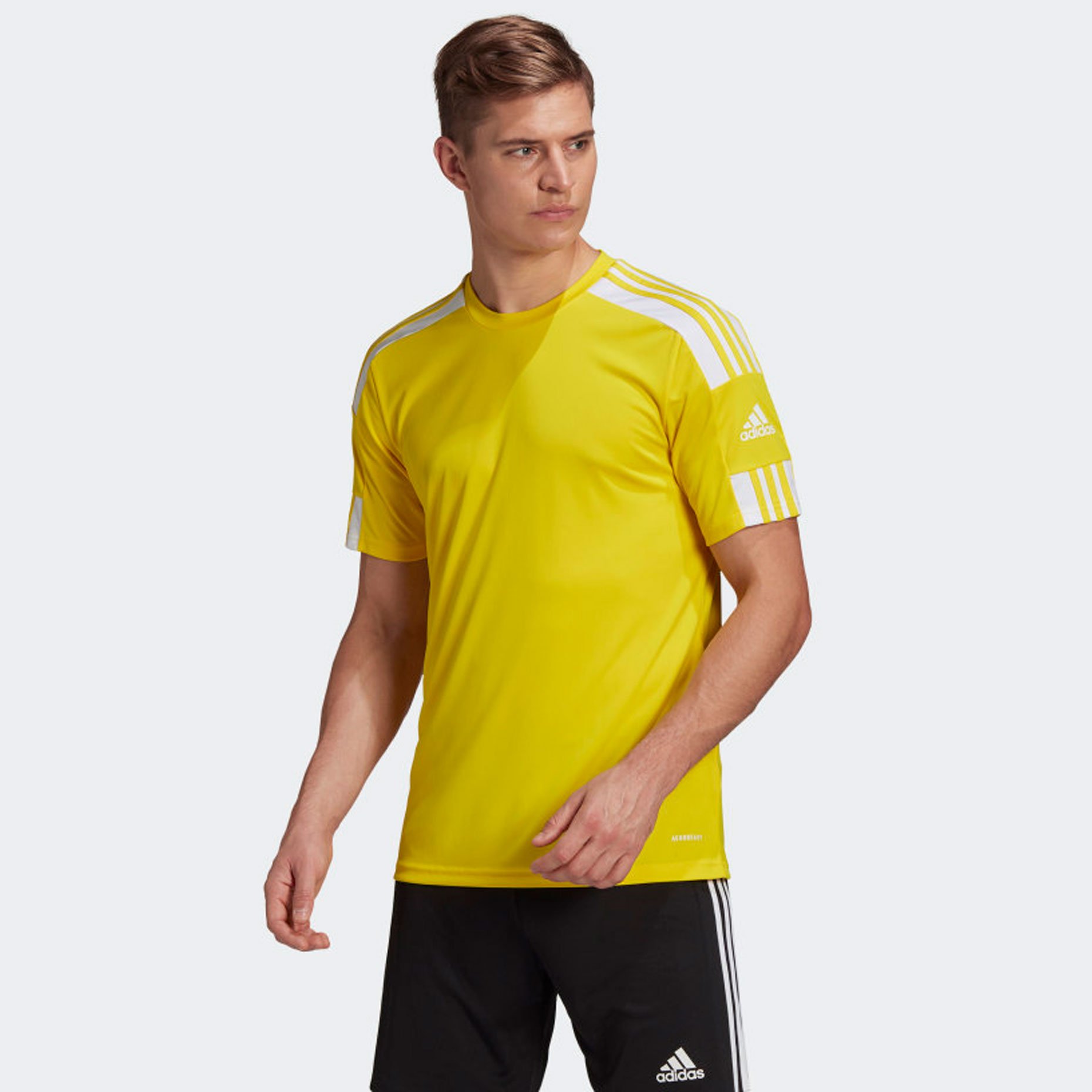На поле все зависит только от тебя и твоей команды. Чтобы помочь тебе выиграть, adidas создал коллекцию Squadra21. Футболка из материала AEROREADY обеспечит ощущение сухости и уверенности в себе. Переработанные волокна в ее составе ― это еще один шаг к сокращению пластиковых отходов. В состав этой футболки входит материал Primegreen, созданный из переработанных волокон.