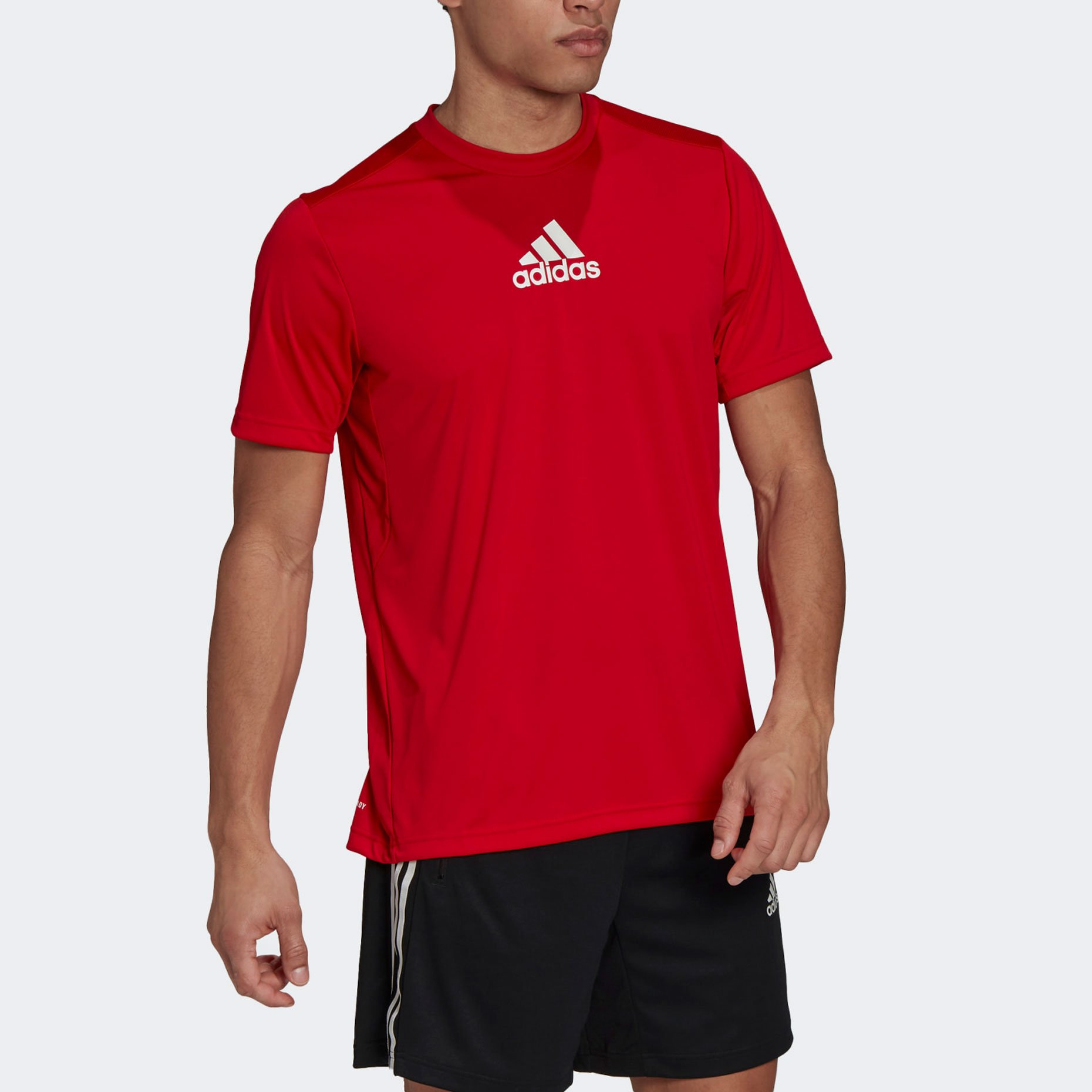 Футболка adidas выполнена из мягкой синтетической ткани с применением технологии AEROREADY, которая эффективно отводит влагу от тела оставляя е сухой во время тренировок. Имеет прямой крой, благодаря которому ее можно использовать в повседневной носке. Плоские швы не будут натирать при движениях. Модель содержит Primeblue, функциональный переработанный материал с волокнами Parley Ocean Plastic.