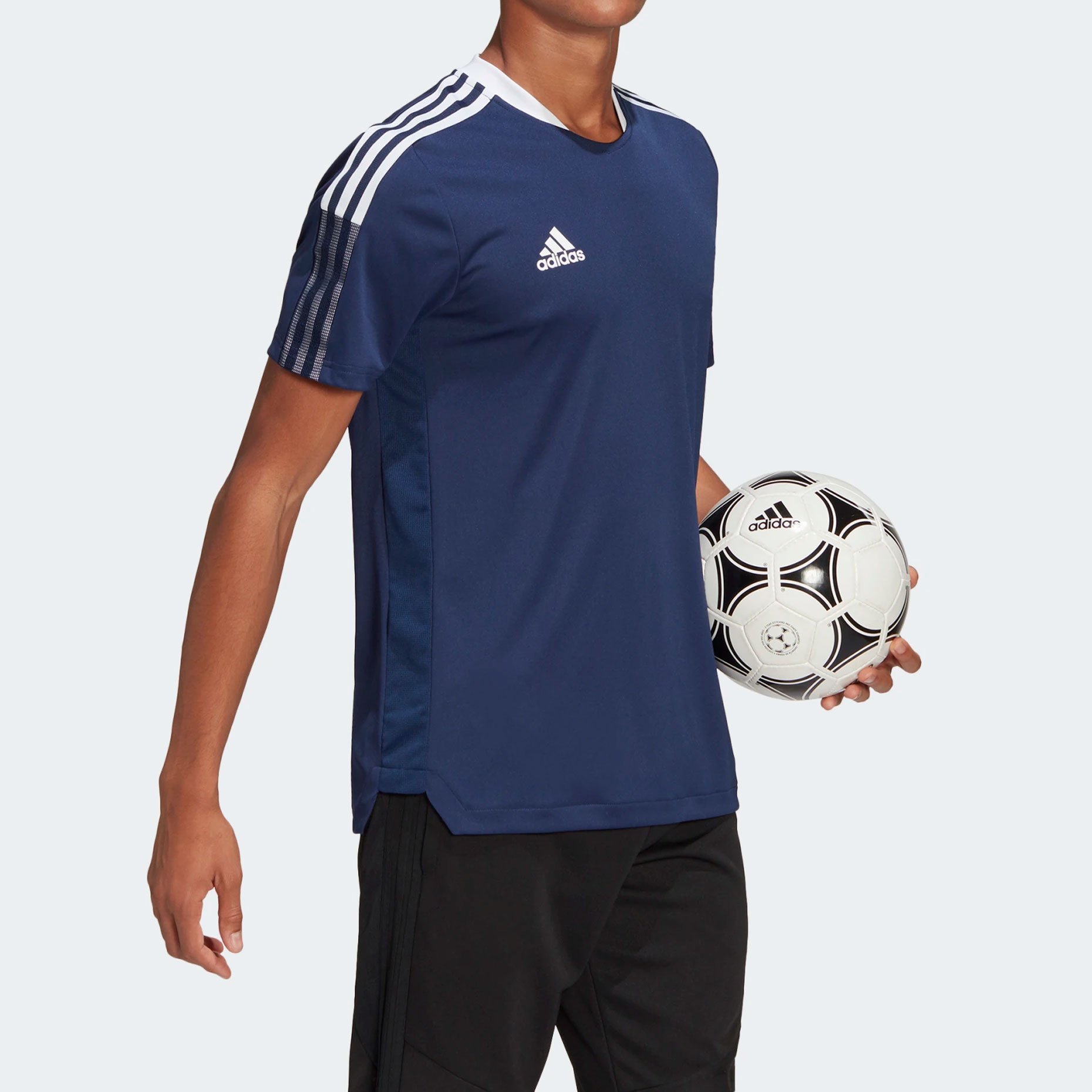 Футбольное джерси adidas Tiro 21 выполнено из легкого влагоотводящего материала с применением переработанных материалов. Специальный крой для свободы движений. Вставки из сетки по бокам дополнительно отводят тепло от тела во время интенсивных тренировок, позволяя коже оставаться сухой.