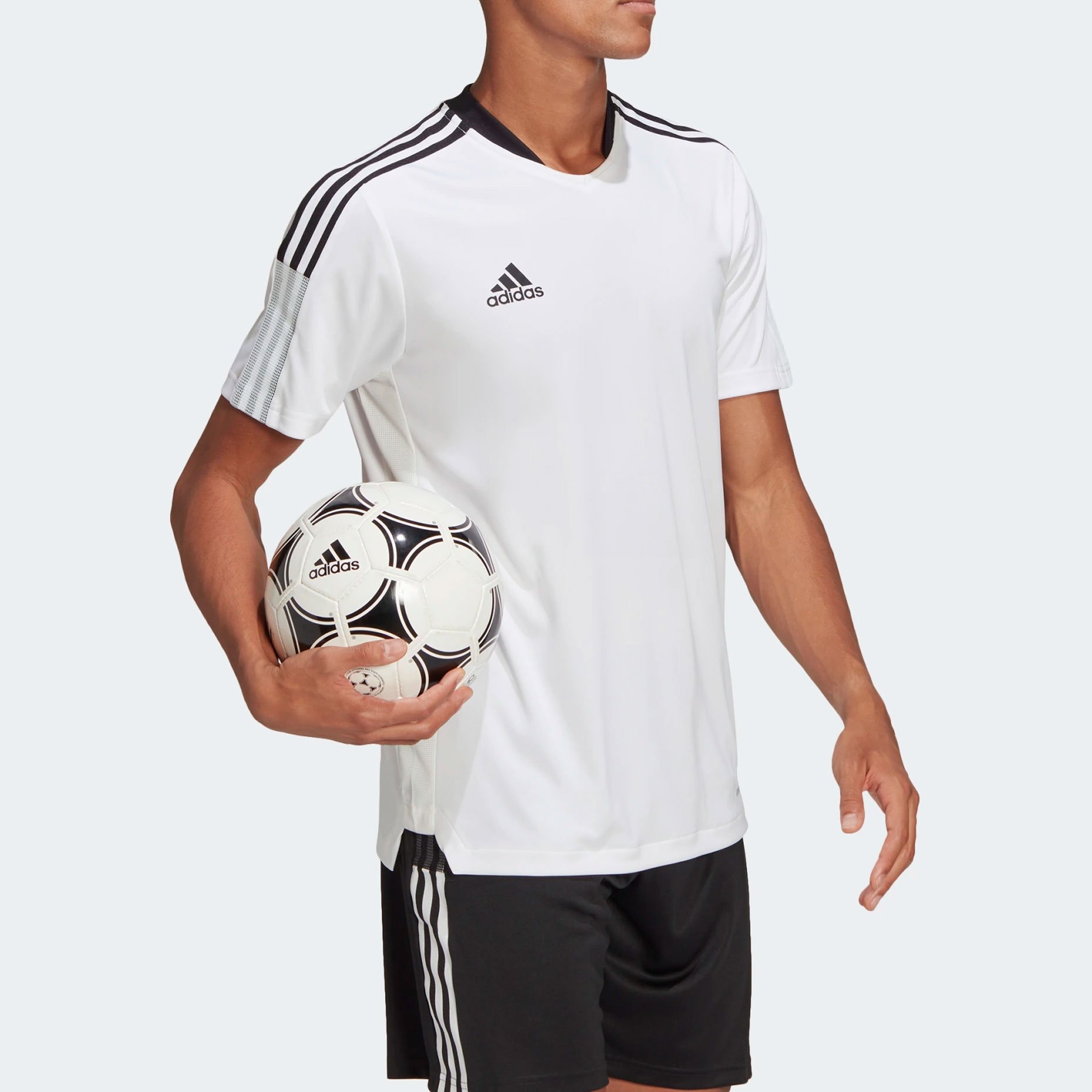 Футбольное джерси adidas Tiro 21 выполнено из легкого влагоотводящего материала с применением переработанных материалов. Специальный крой для свободы движений. Вставки из сетки по бокам дополнительно отводят тепло от тела во время интенсивных тренировок, позволяя коже оставаться сухой.