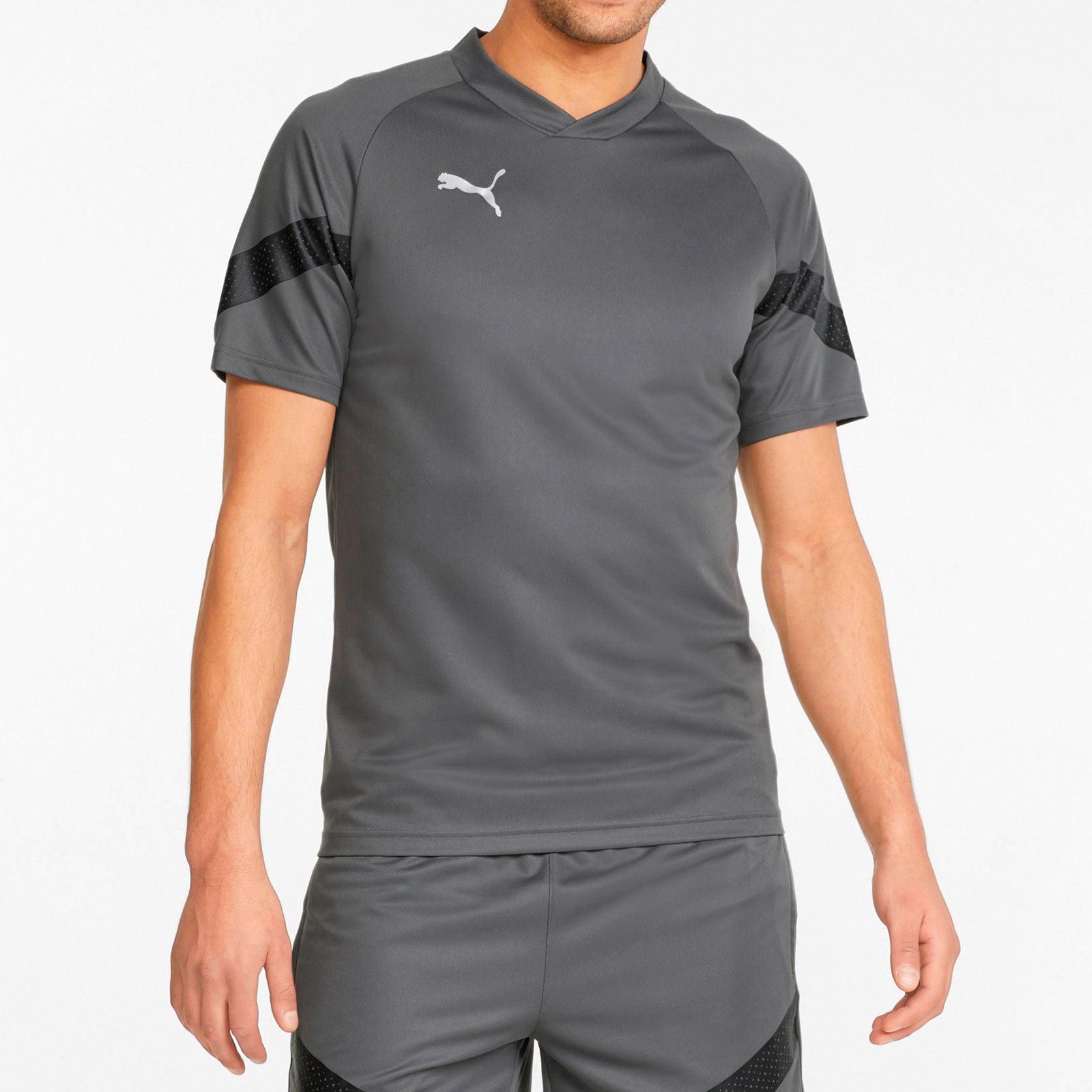 Тренировочная футболка Puma teamFINAL выполнена из легкой синтетической ткани с применением технологии DryCELL, которая эффективно отводит влагу от кожи позволяя ей оставаться сухой.