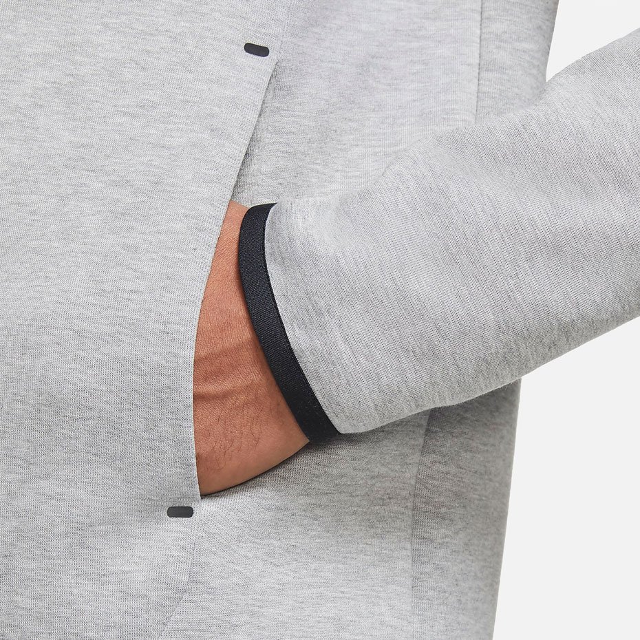 Прозрачный укрепленный кант подчеркивает фирменный карман Tech Fleece на молнии. В боковых карманах удобно хранить телефон и ключи.