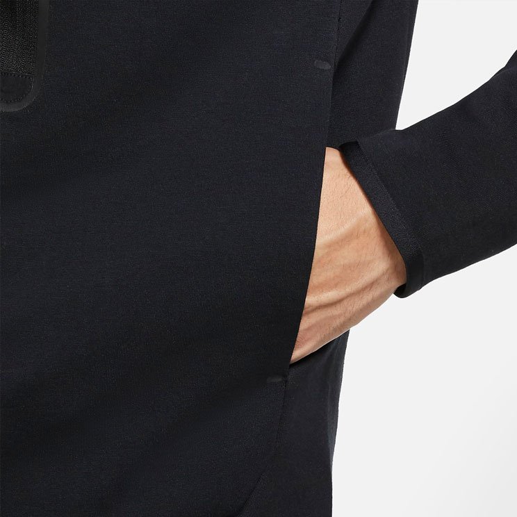 Прозрачный укрепленный кант подчеркивает фирменный карман Tech Fleece на молнии. В боковых карманах удобно хранить телефон и ключи.