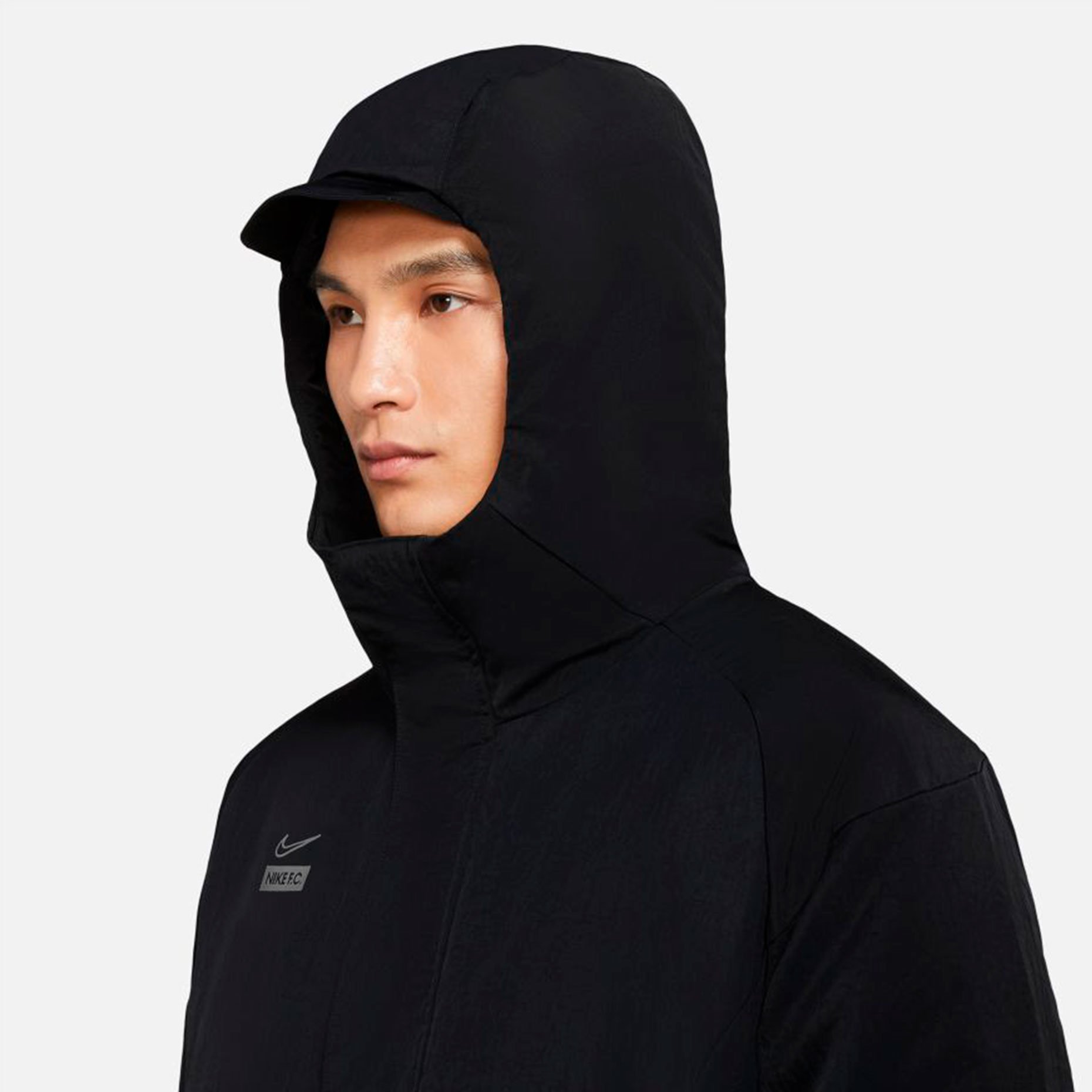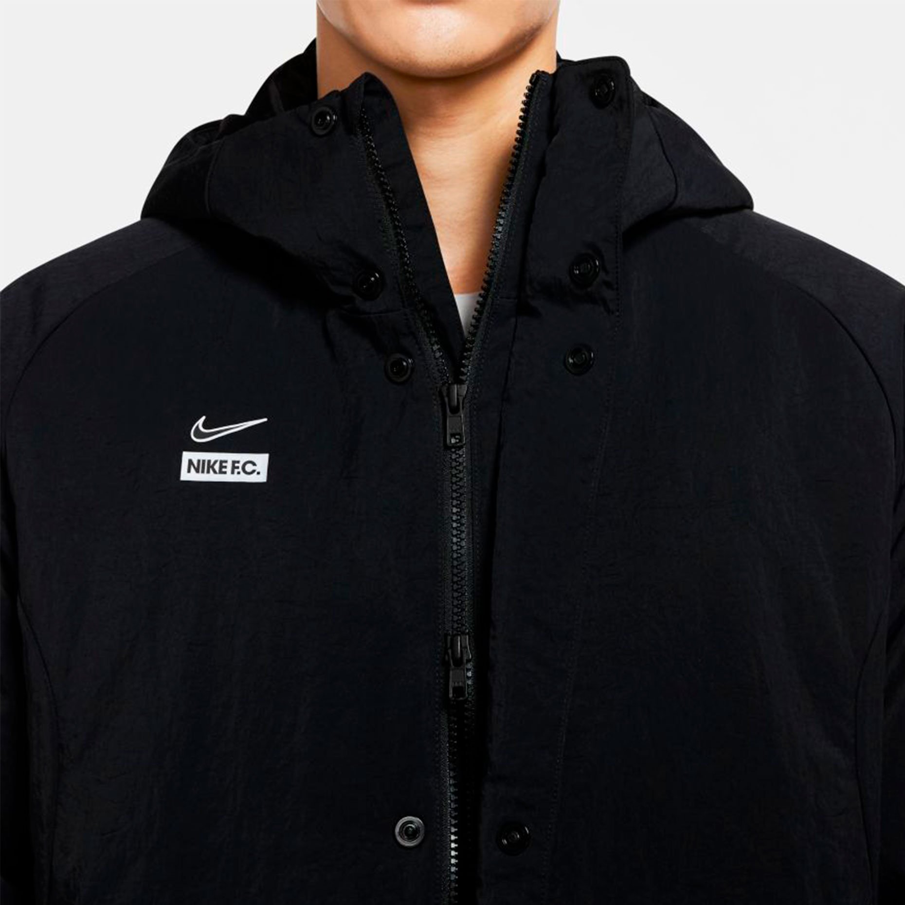 Тепло и защита в холодную погоду. Покоряйте улицы города в куртке Nike F.C. Крой в стиле плаща обеспечивает эффективную защиту. Влагоотводящая ткань и легкий наполнитель помогают сохранять тепло в холодную погоду.