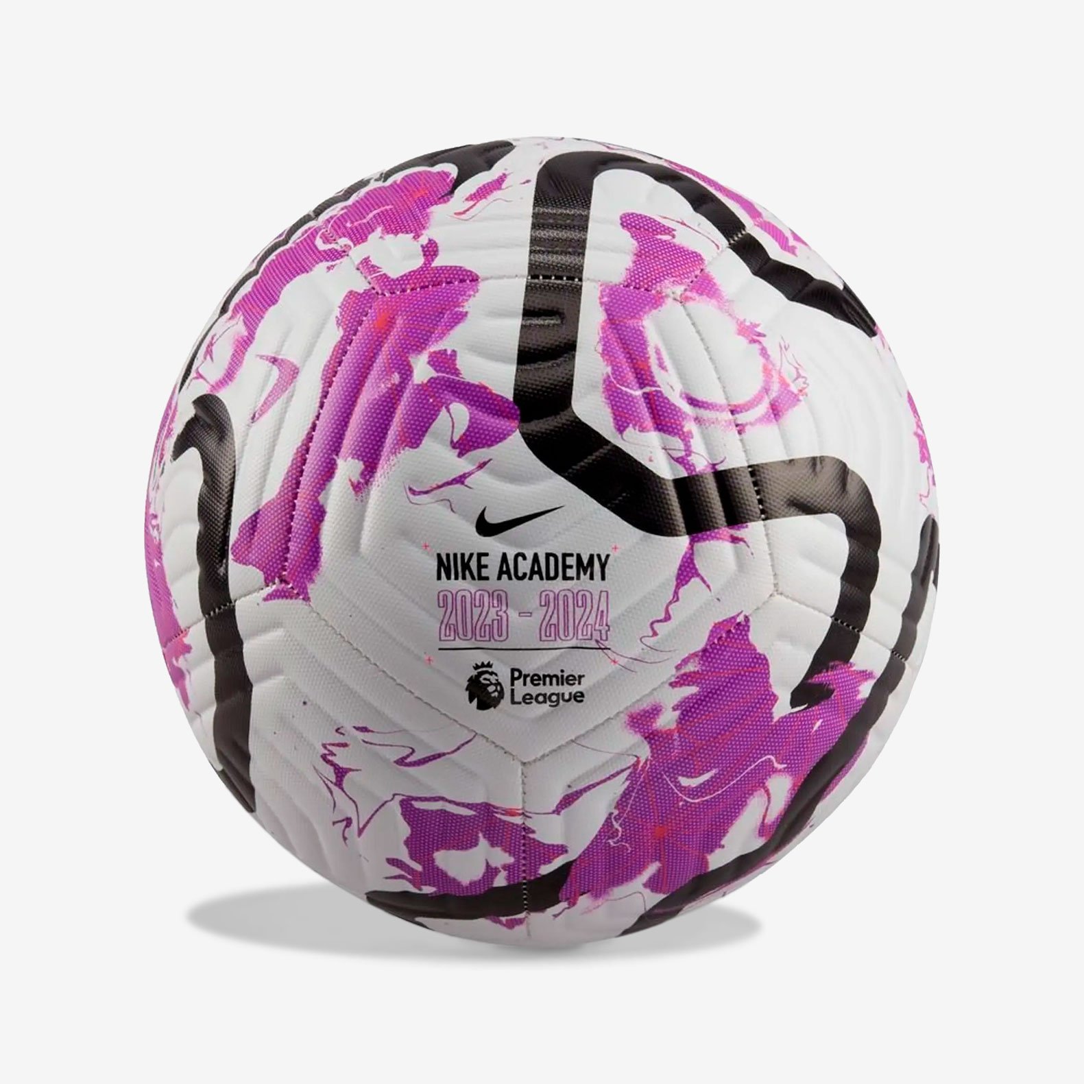 Этот мяч повторяет дизайн официального мяча Английской премьер лиги на сезон 2023-2024. На белую основу наложена фиолетовая графика, а контрастная черная полоса проходит по поверхности, помогая видеть и распознавать мяч во время движения.