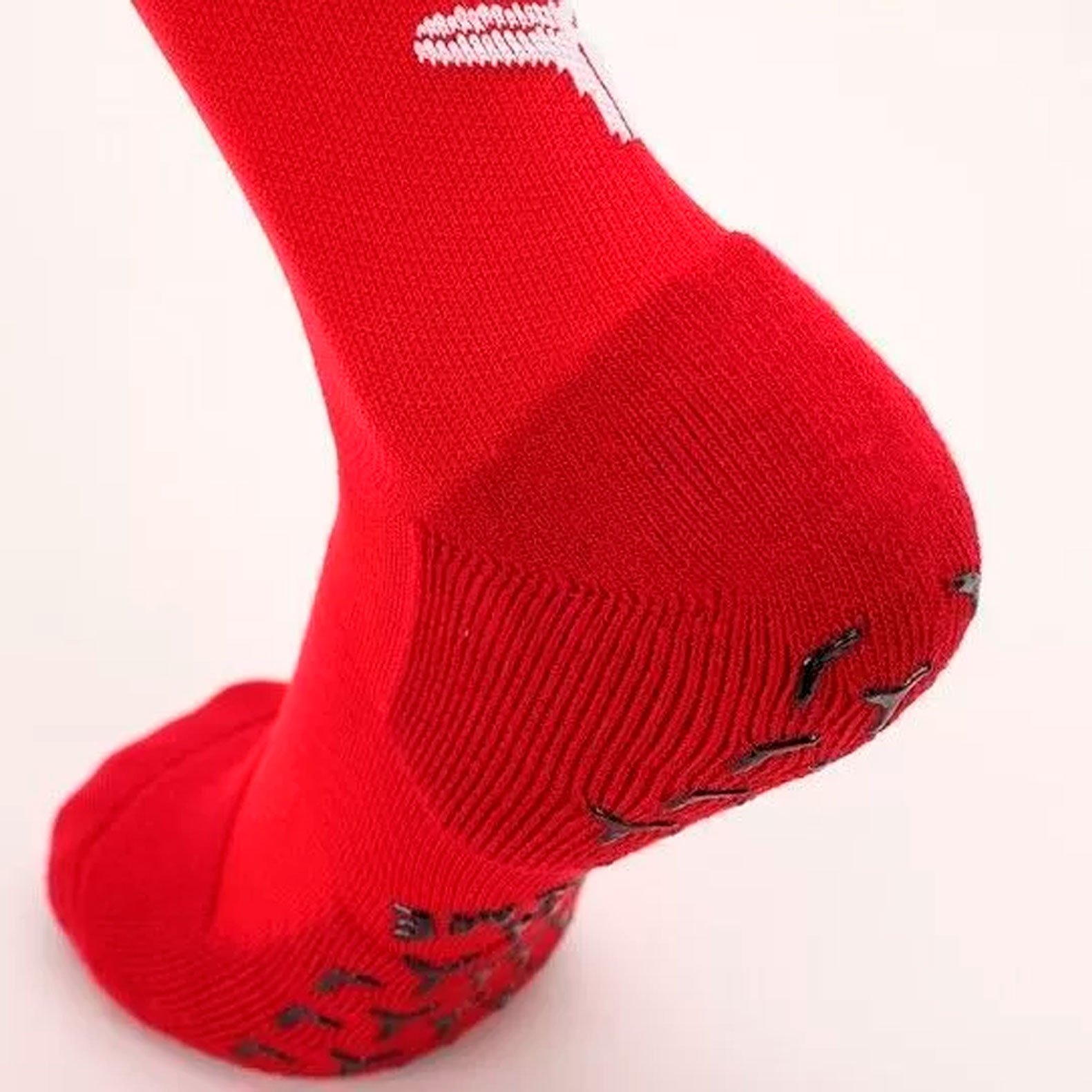 - На подошве носков имеются силиконовые вставки, которые помогают предотвратить скольжение стопы внутри обуви. Это повышает устойчивость и контроль над движениями, что особенно важно при выполнении резких поворотов и ускорений на футбольном поле.