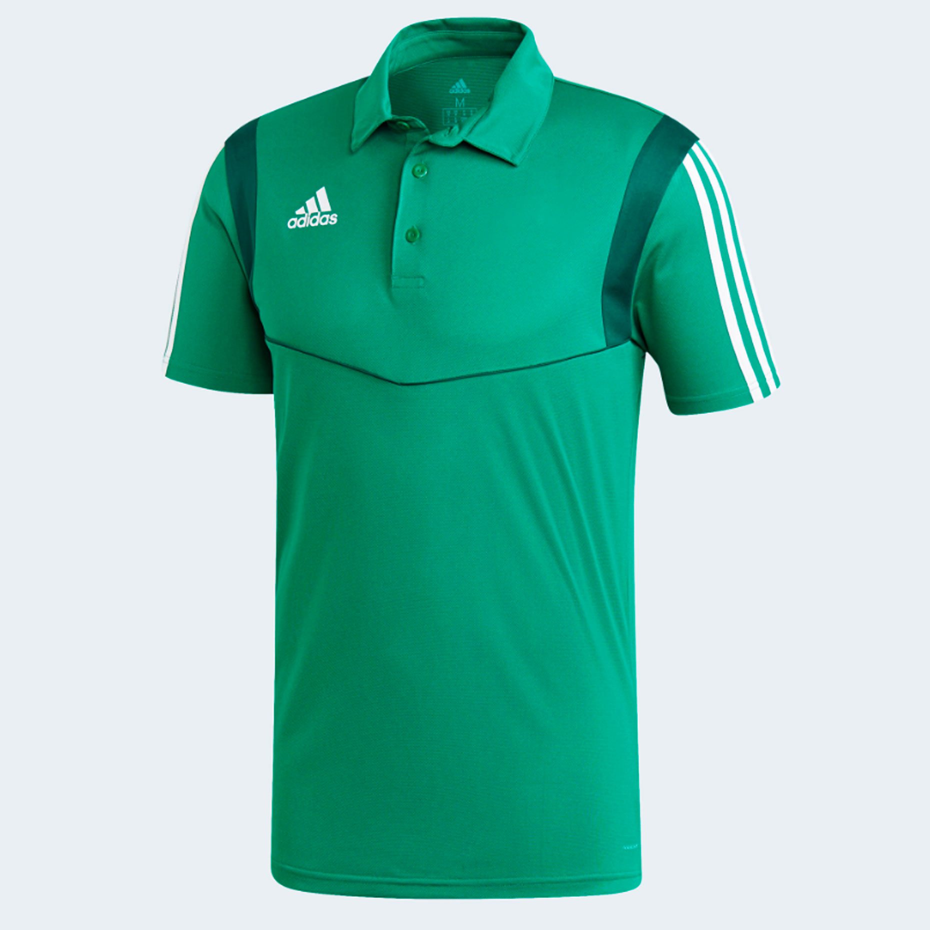 Будь готов к выходу. В этой футболке-поло из отводящей влагу ткани тебе будет комфортно ждать на скамье запасных. Модель из классической ткани пике украшена тремя полосками по бокам.