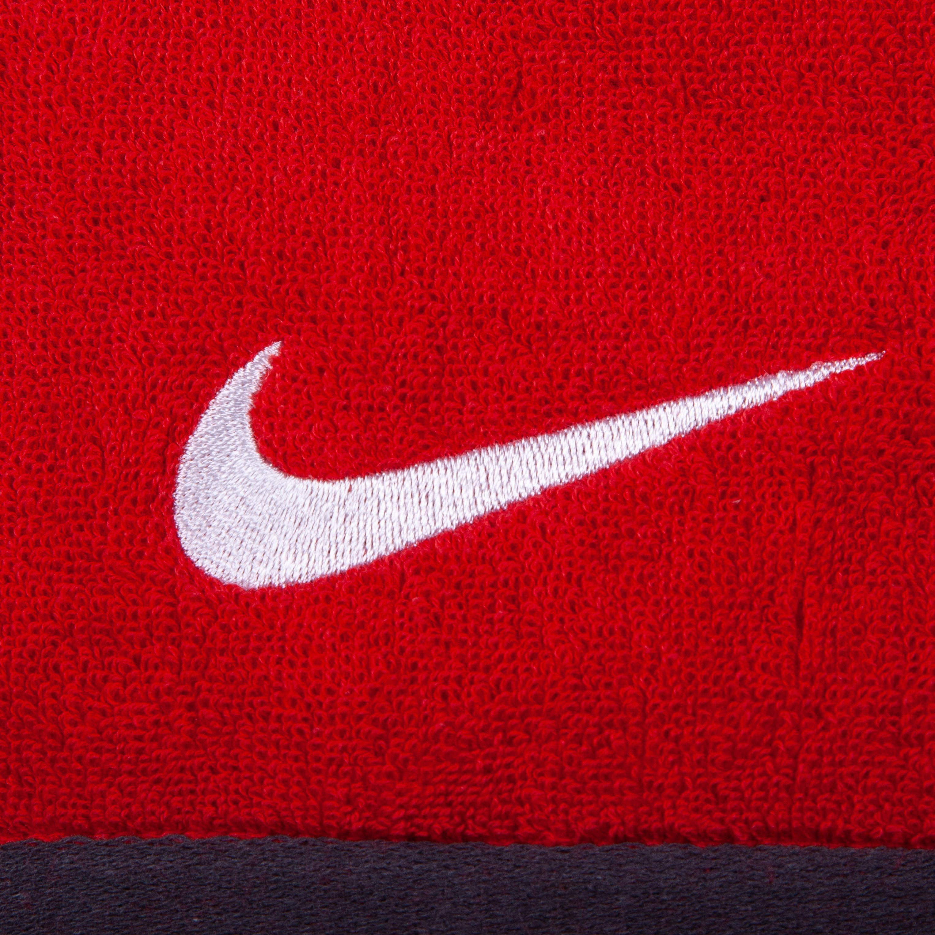Полотенце Nike красного цвета отлично стирается, быстро сохнет, не деформируется и не линяет. Оно очень хорошо впитывает влагу.