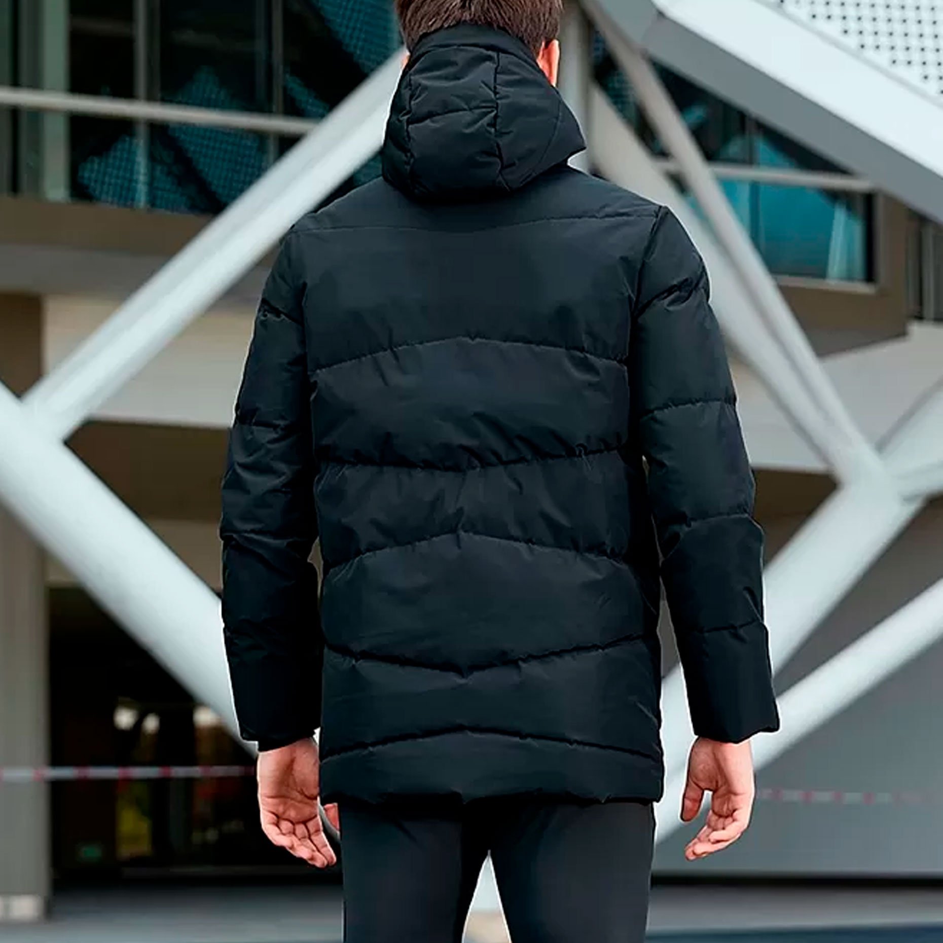 - Воротник с высокой стойкой обеспечивает защиту шеи от холодного ветра. Застежка-молния на передней панели упрощает надевание и снятие пуховика.