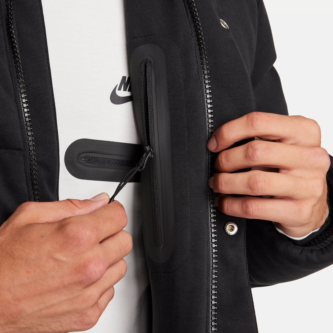 - Наполнитель из утиного пуха и верх из фирменной ткани Tech Fleece обеспечивают оптимальную защиту от холода.