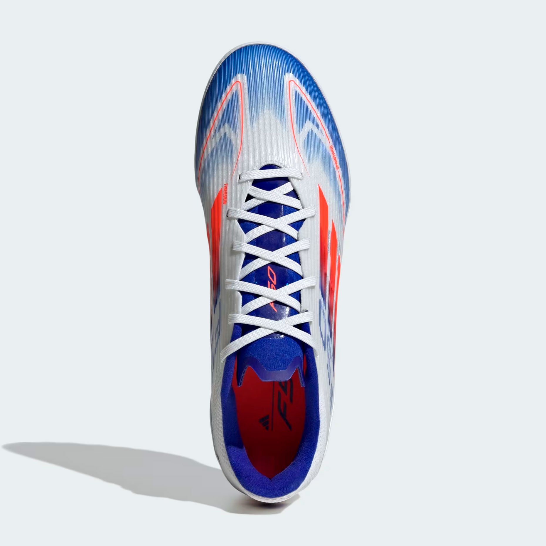 Верх обуви выполнен из легкого материала Fiberskin, который обеспечивает прочность и гибкость, а перфорированный язычок способствует вентиляции, поддерживая комфорт в течение всей игры. Принт Sprintgrid на передней части стопы усиливает ощущение контроля над мячом, помогая достичь лучших результатов на поле.