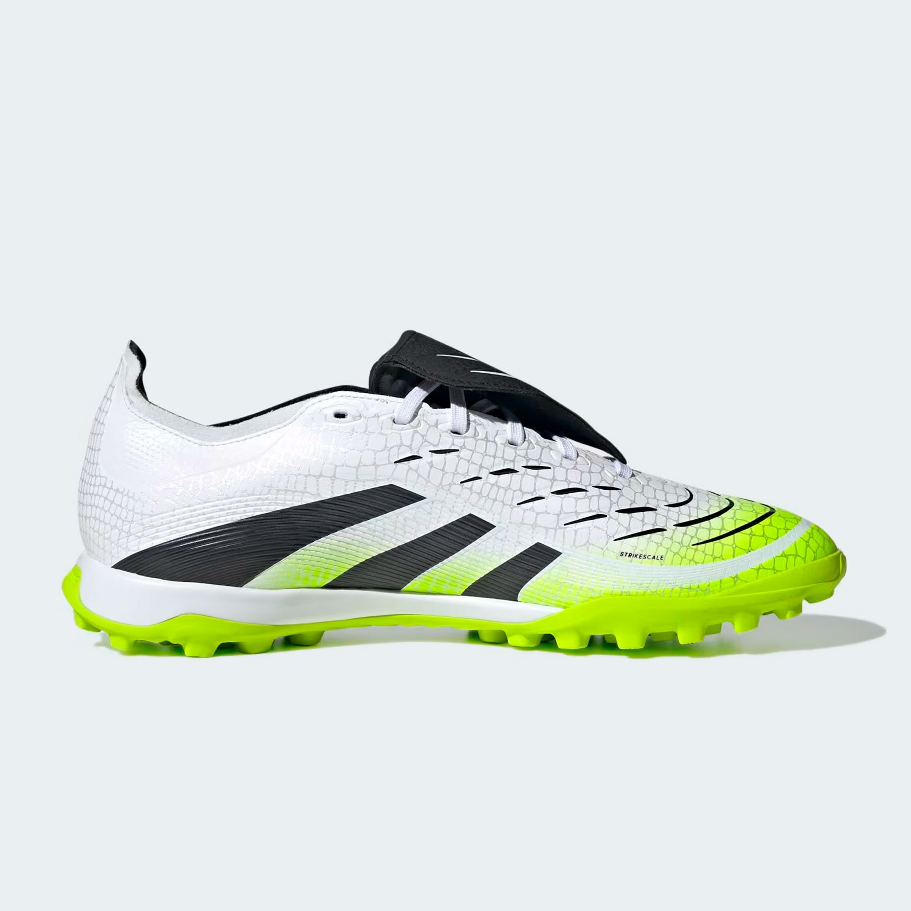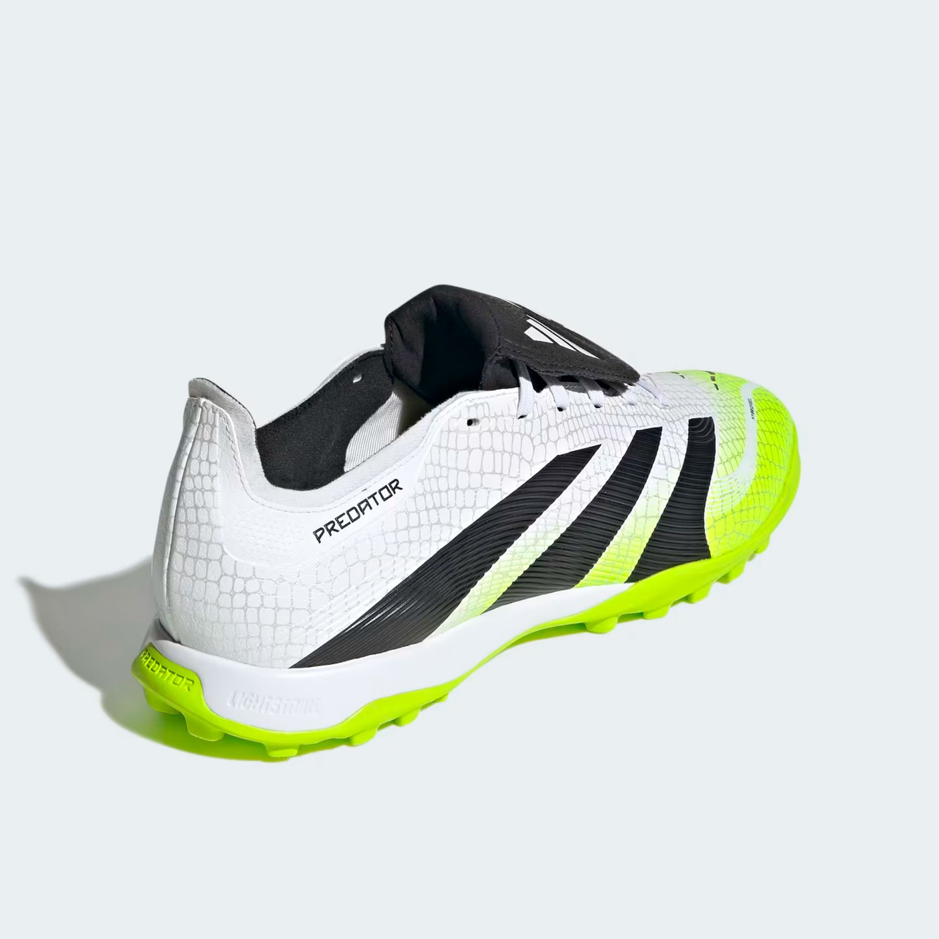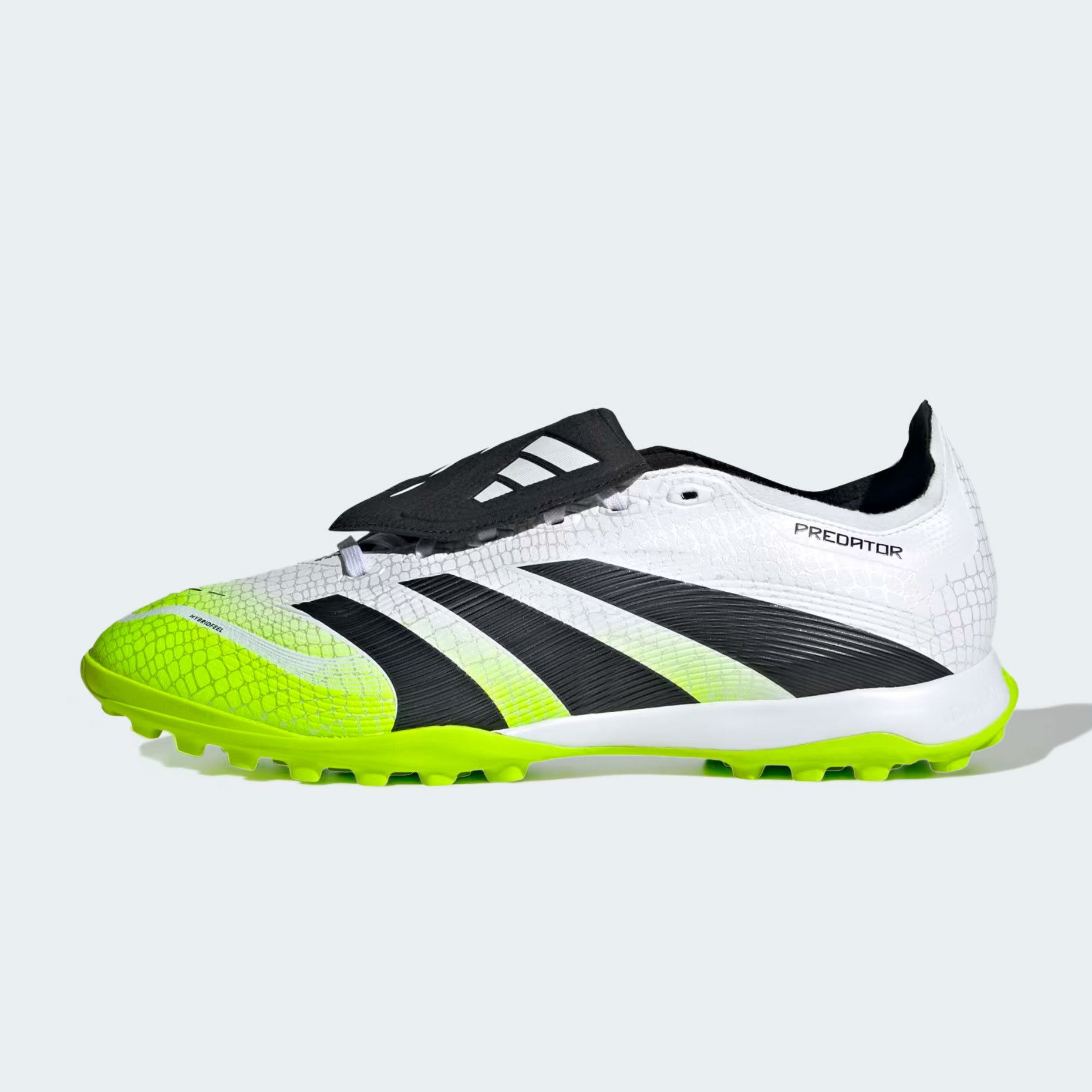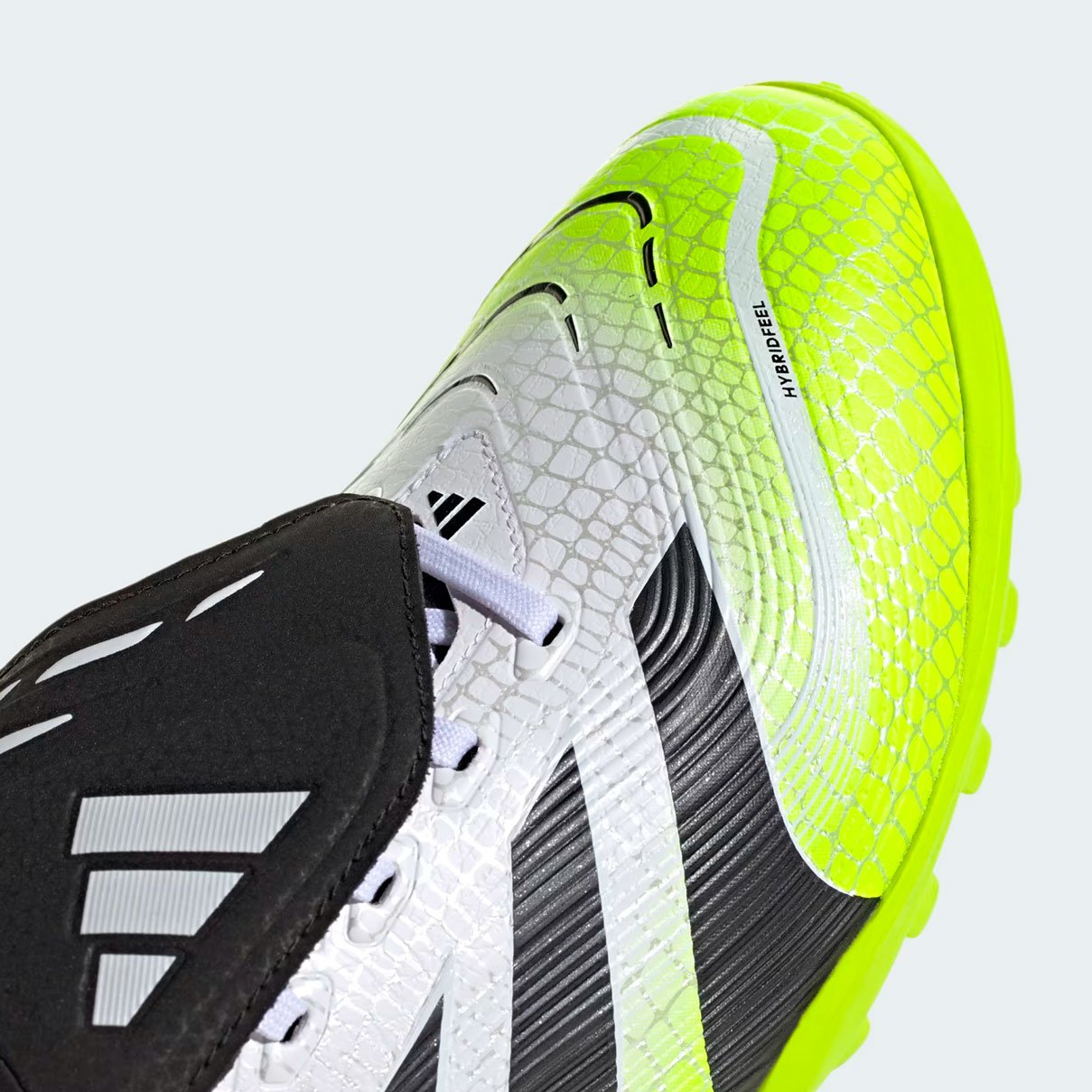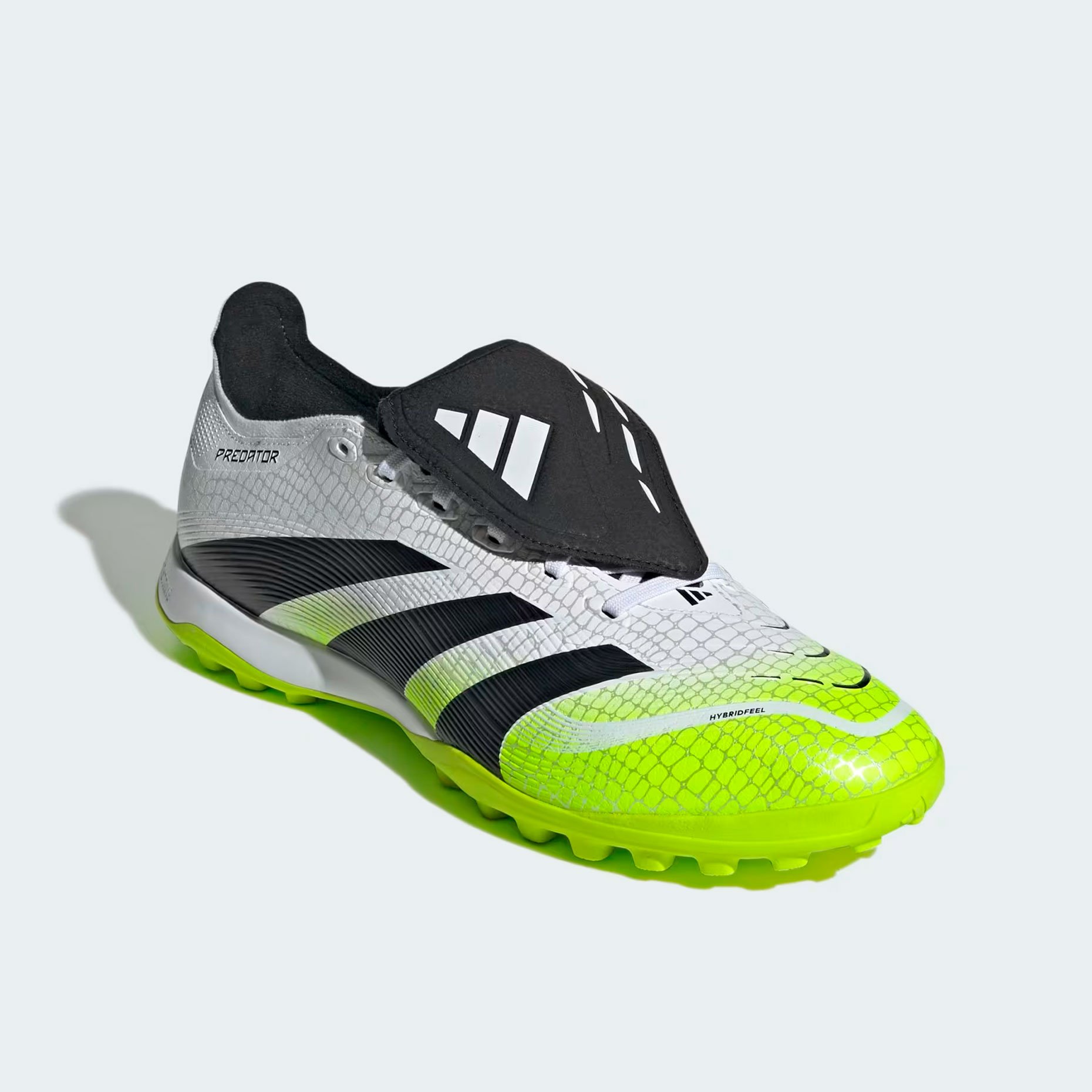Шиповки adidas Predator League FT TF – это модель тренировочного уровня для игры на искусственном покрытии. Их уникальный верх из материала Hybridfeel с 3D-текстурой и элементами Strikescale обеспечивает исключительный контроль мяча при ударах. Складной язычок, закрывающий шнуровку, добавляет комфорта и стильного внешнего вида.