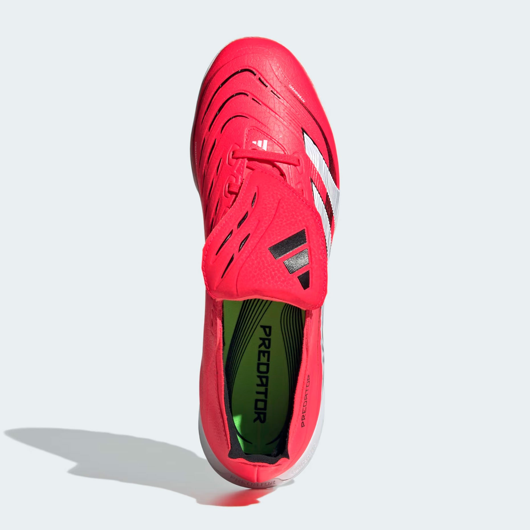 Резиновая подошва с продуманным рисунком шипов гарантирует отличное сцепление и маневренность на искусственной траве. Промежуточная подошва Lightstrike обеспечивает мгновенный отклик при движениях, а низкий профиль способствует максимальной подвижности игрока. Экологичность модели подтверждается использованием не менее 20% переработанных материалов в производстве.