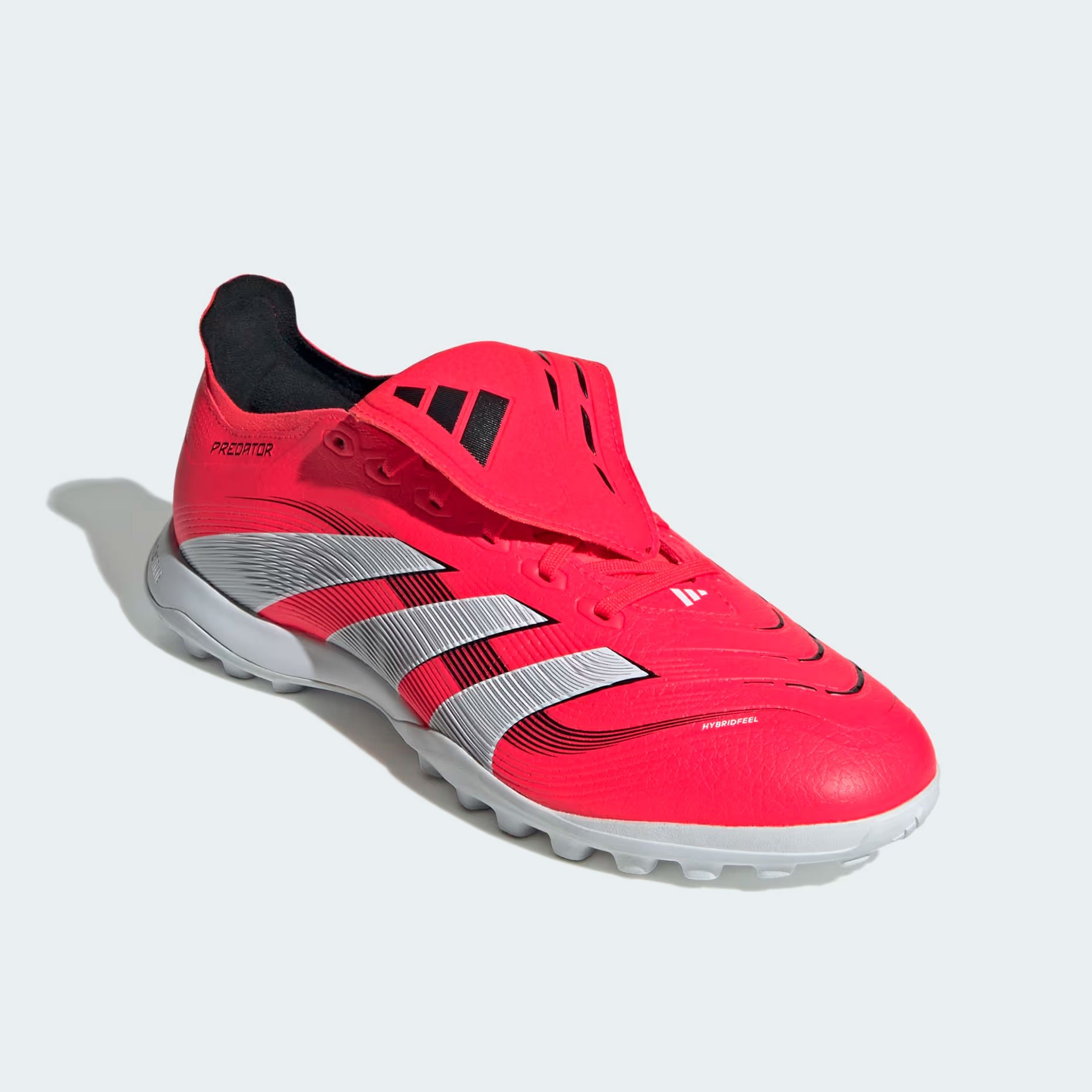 Шиповки adidas Predator League FT TF – это модель тренировочного уровня для игры на искусственном покрытии. Их уникальный верх из материала Hybridfeel с 3D-текстурой и элементами Strikescale обеспечивает исключительный контроль мяча при ударах. Складной язычок, закрывающий шнуровку, добавляет комфорта и стильного внешнего вида.