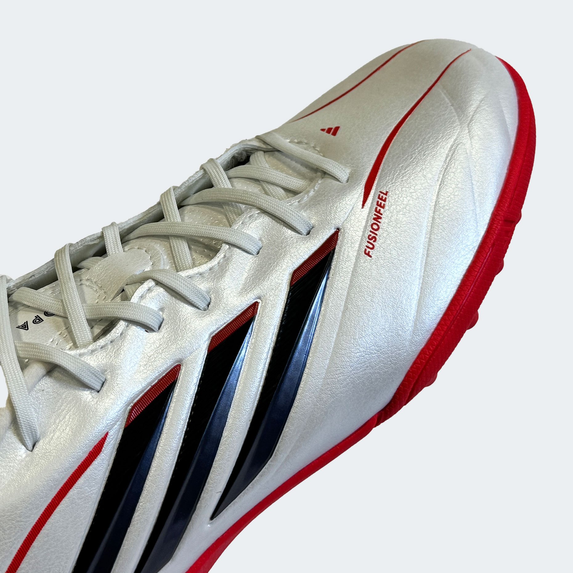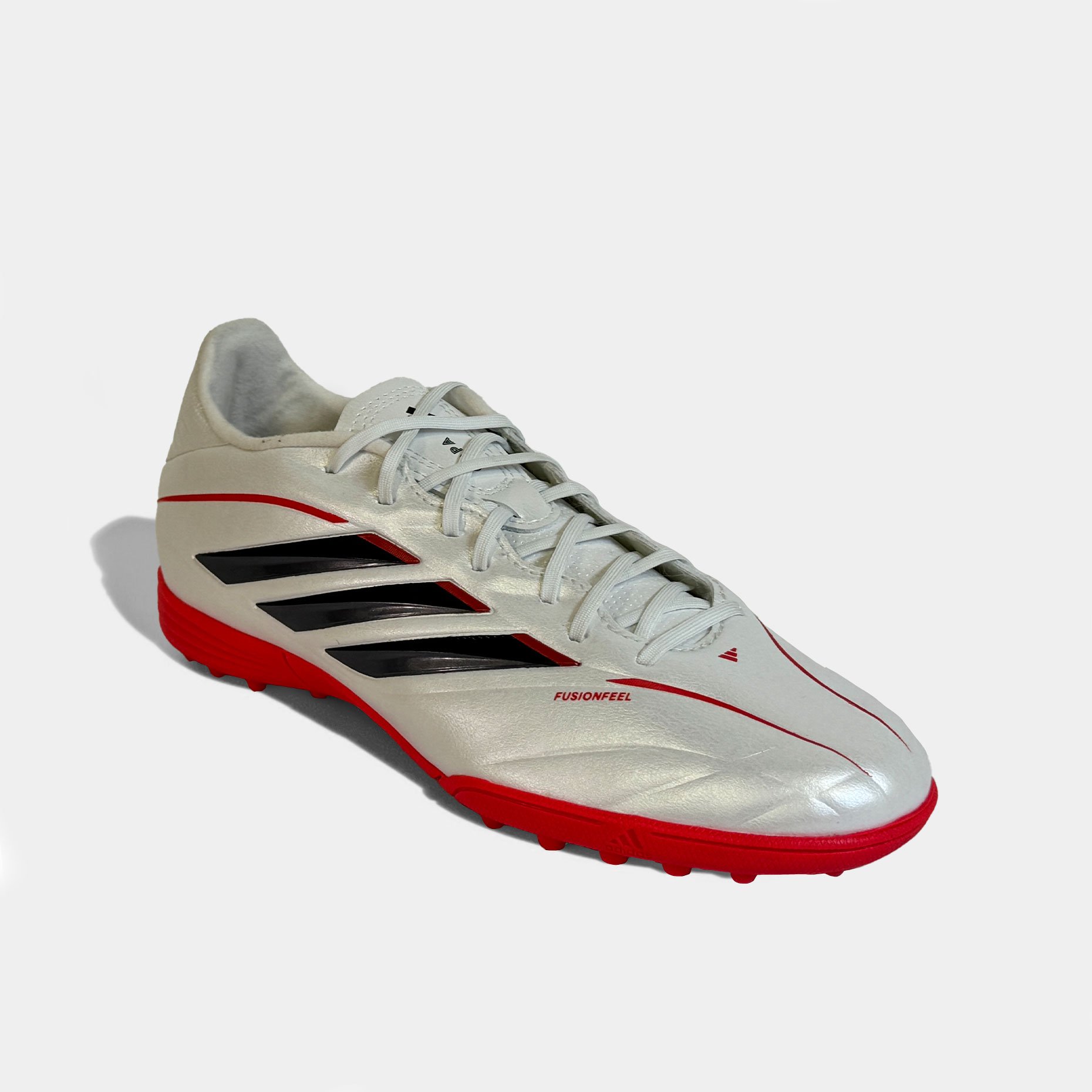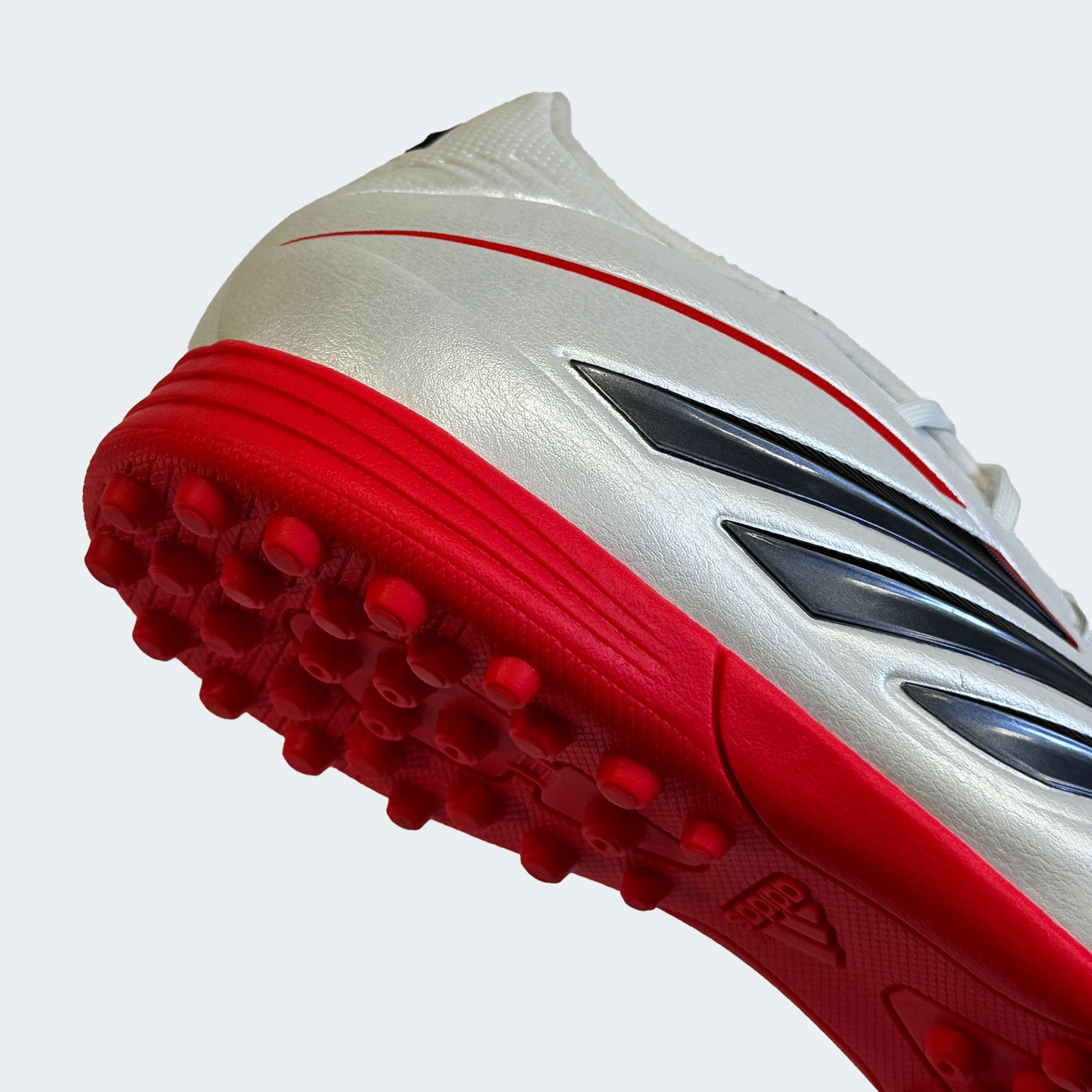 Детские шиповки adidas Copa Pure IV League TF — это обновлённая тренировочная модель, созданная для юных футболистов, для игры на твёрдых покрытиях с искусственным газоном и коротким ворсом. Эта версия продолжает традиции легендарной серии Copa, сочетая классический стиль с современными технологиями. Верх из синтетического материала Fusionfeel имитирует ощущение натуральной кожи — он мягкий, гибкий и идеально облегает стопу, обеспечивая превосходную тактильную чувствительность при контакте с мячом. Плавные линии дизайна подчёркивают элегантность модели, а плоские шнурки создают ровную зону удара, позволяя точнее контролировать пасы и удары.