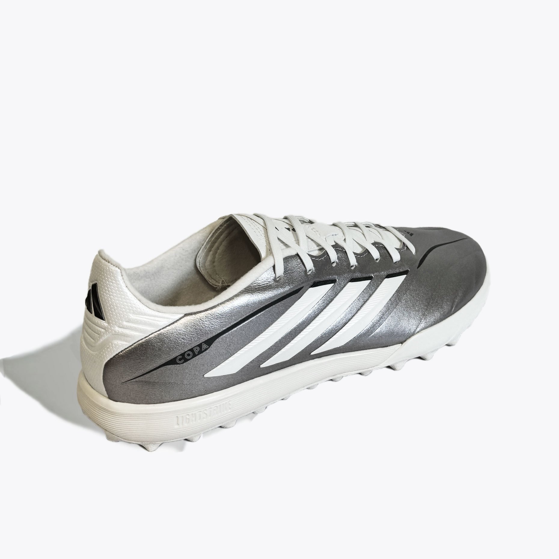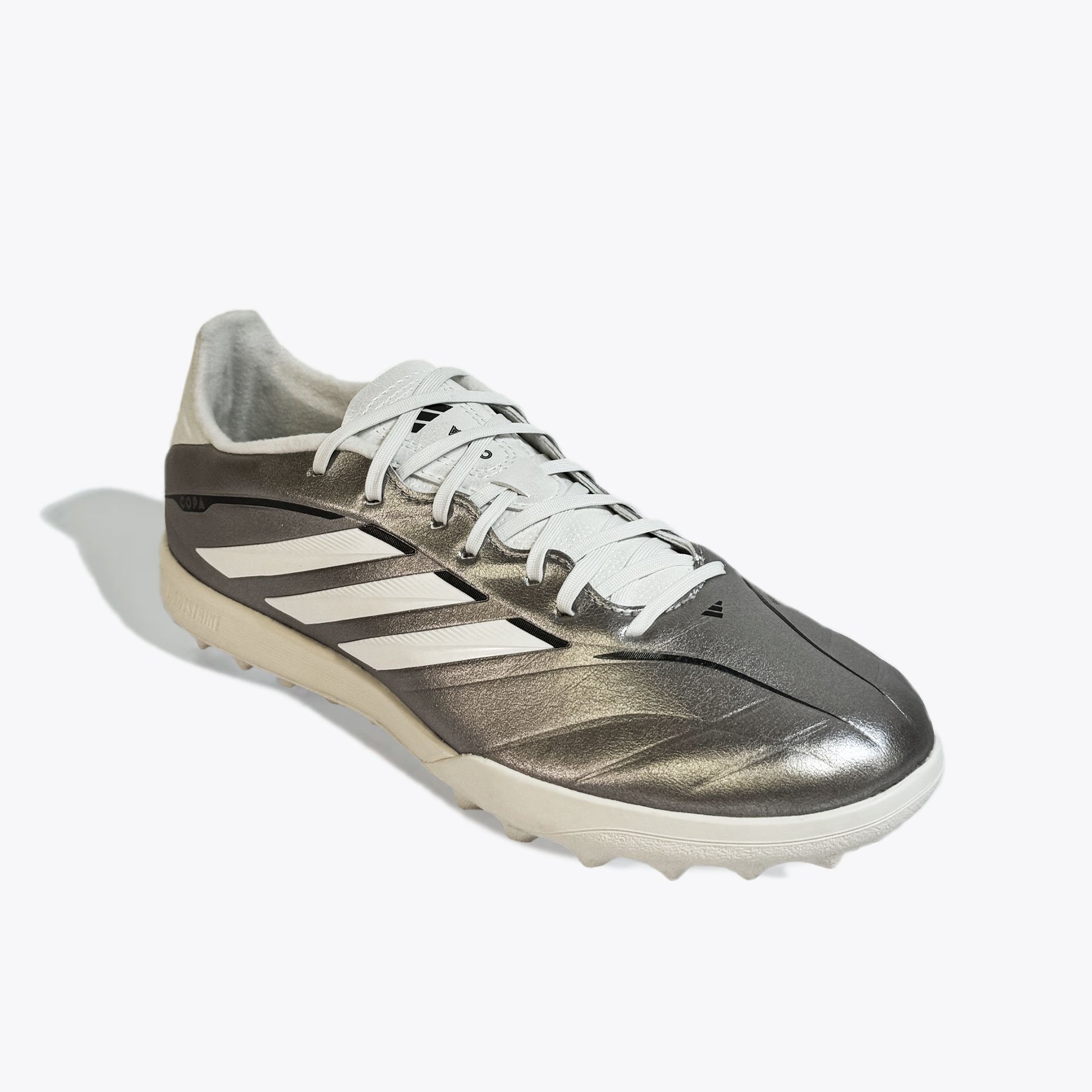 Детские шиповки adidas Copa Pure IV League TF — это обновлённая тренировочная модель, созданная для юных футболистов, для игры на твёрдых покрытиях с искусственным газоном и коротким ворсом. Эта версия продолжает традиции легендарной серии Copa, сочетая классический стиль с современными технологиями. Верх из синтетического материала Fusionfeel имитирует ощущение натуральной кожи — он мягкий, гибкий и идеально облегает стопу, обеспечивая превосходную тактильную чувствительность при контакте с мячом. Плавные линии дизайна подчёркивают элегантность модели, а плоские шнурки создают ровную зону удара, позволяя точнее контролировать пасы и удары.