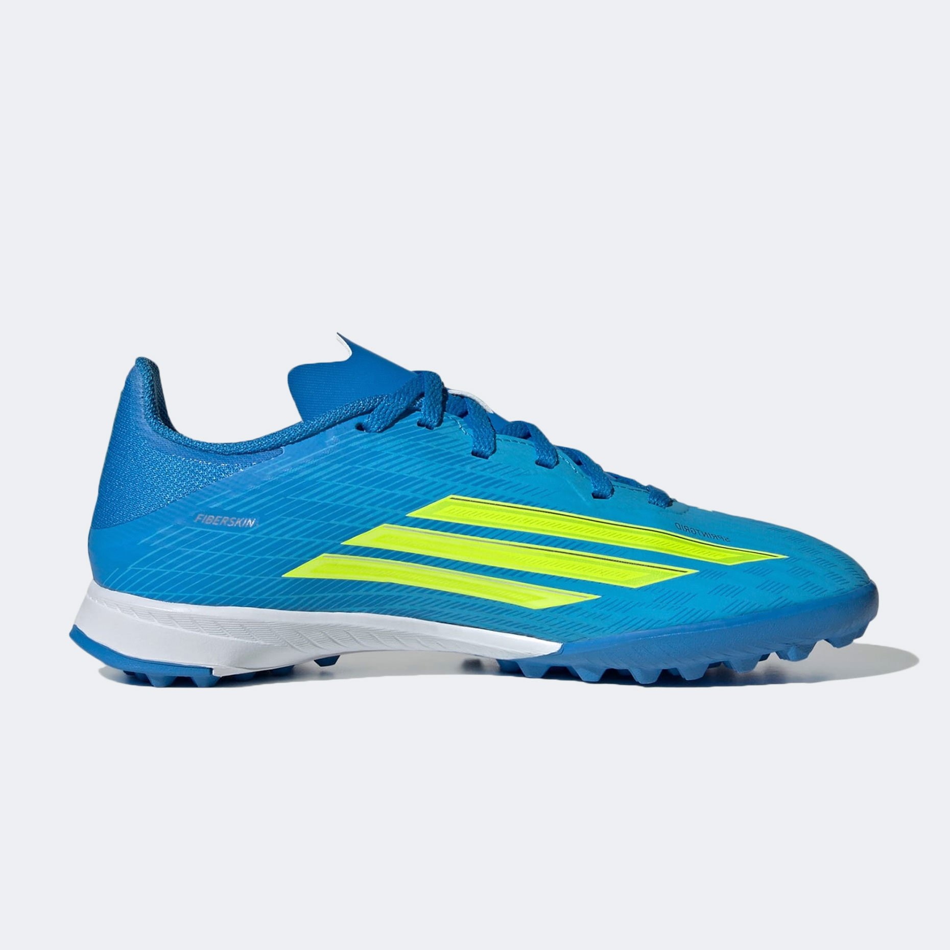 Верх обуви выполнен из легкого материала Fiberskin, который обеспечивает прочность и гибкость, а перфорированный язычок способствует вентиляции, поддерживая комфорт в течение всей игры. Принт Sprintgrid на передней части стопы усиливает ощущение контроля над мячом, помогая достичь лучших результатов на поле.