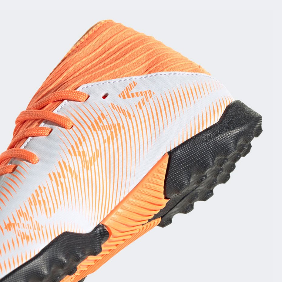 Шиповки adidas Nemeziz.3 модель для сухих, жестких полей с искусственным травяным покрытием. Верх этой модели Agility Mesh, выполненный из прочного, текстильного материала, имеет легкую, уникальную конструкцию в которой отсутствует традиционный внутренний язычок, что дает игроку отличное ощущение мяча при касании и обеспечивает максимально комфортную и точную посадку бутс по ноге. Рельефная структура верхнего слоя усиливает ощущение мяча при контакте с ногой, позволяя более эффективно работать с ним. Эластичный ворот Dual Lock Collar создает надежную фиксацию стопы и обеспечивает оптимальную устойчивость в области голеностопа. Подошва отличается легкостью, оптимальной гибкостью и отзывчивостью. Шипы специальной конфигурации обеспечивают идеальное сцепление, позволяя легко двигаться и маневрировать.