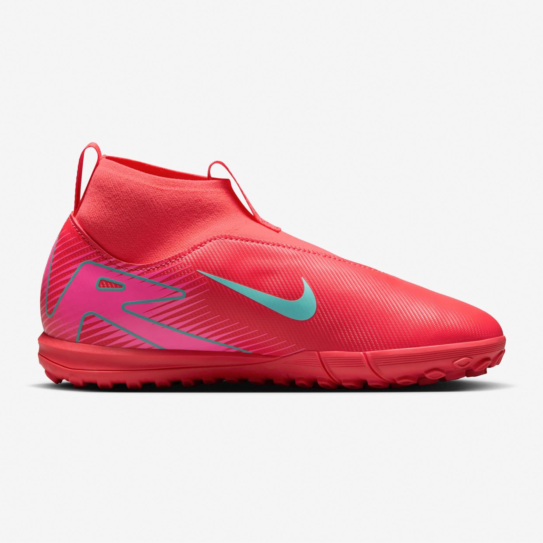 Особая конструкция с эластичным бортиком обеспечивает надежную фиксацию стопы и поддержку во время активных движений на поле. Специальная конфигурация шипов на подошве гарантирует превосходное сцепление с искусственным покрытием, позволяя выполнять резкие маневры и быстро менять направление движения без потери стабильности. Благодаря продуманной системе амортизации и использованию качественной резиновой подошвы, обувь обеспечивает комфорт как во время тренировок, так и в ходе матчей. Модель выполнена без шнурков, а две удобные петли на язычке и заднике позволяют быстро и легко надевать шиповки, что особенно удобно для юных спортсменов.