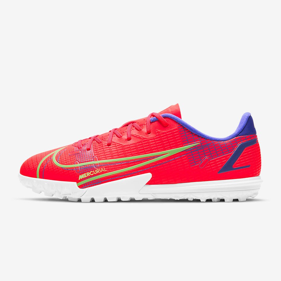 Бутсы Nike Jr. Mercurial Vapor 14 Academy TF с нескользящим покрытием обеспечивают сцепление при движении в любом направлении для скоростной игры. Идеально для игры на покрытиях с короткой искусственной травой.
