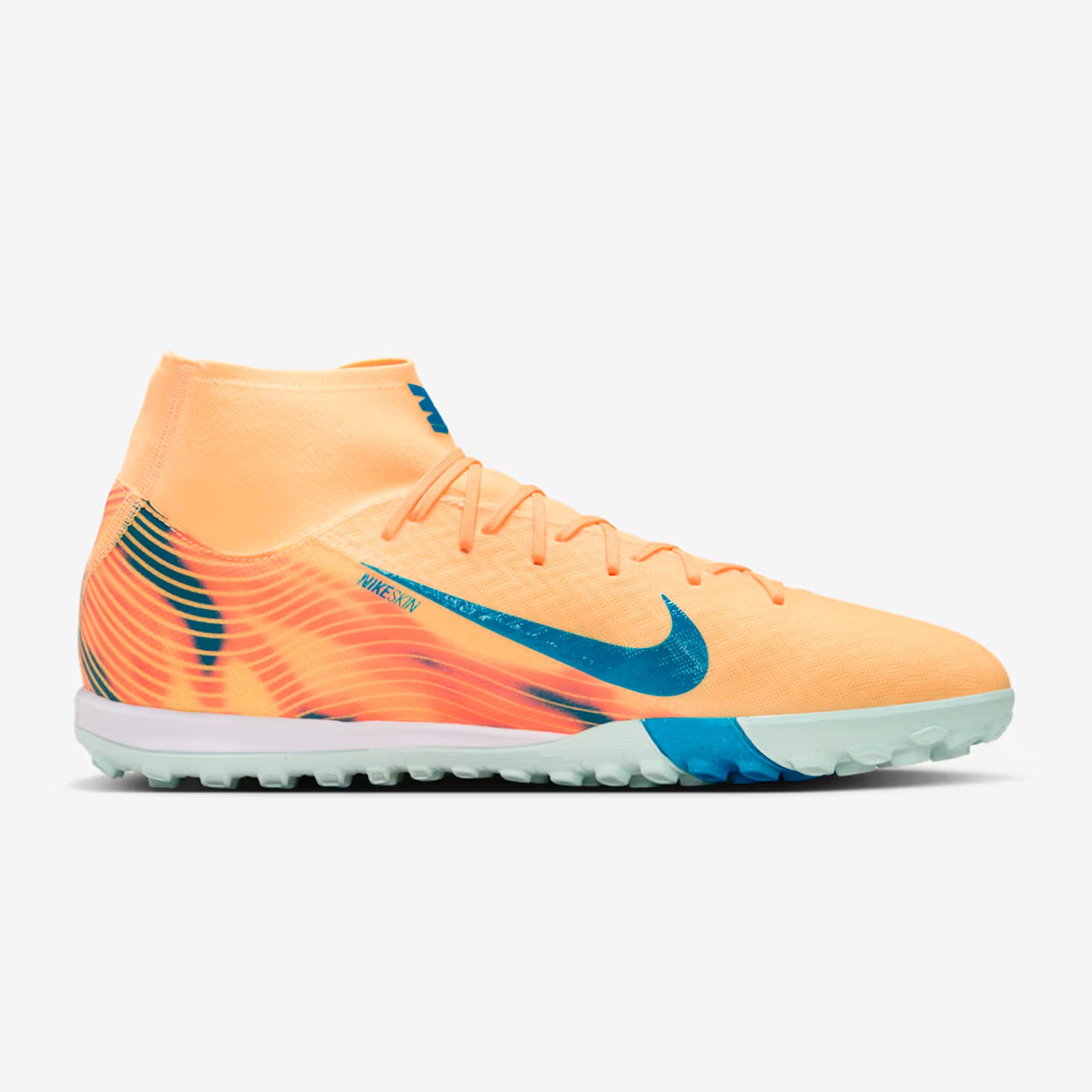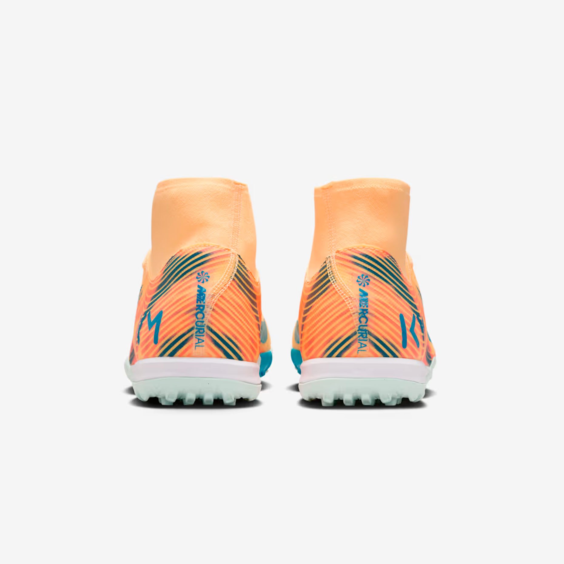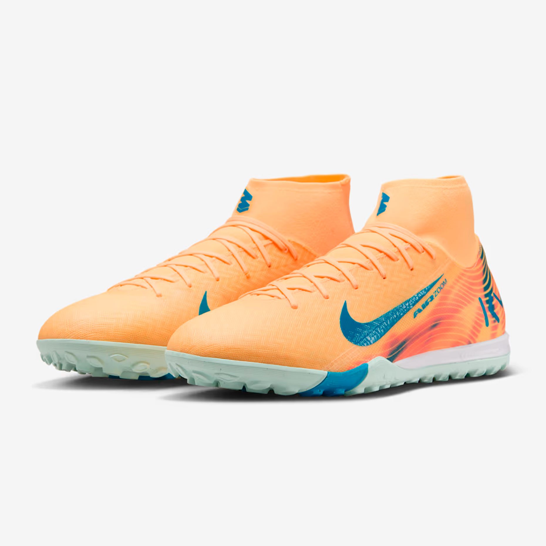 Дизайн получил уникальную расцветку: верх выполнен в ярком оранжевом оттенке Melon Tint, а контрастные акценты в бледно‑голубом цвете использованы на логотипе Swoosh и подошве. Внутри бутс размещено вдохновляющее послание на французском: «SANS RISQUES IL N’Y A PAS DE VICTOIRE» («Без риска нет победы»).