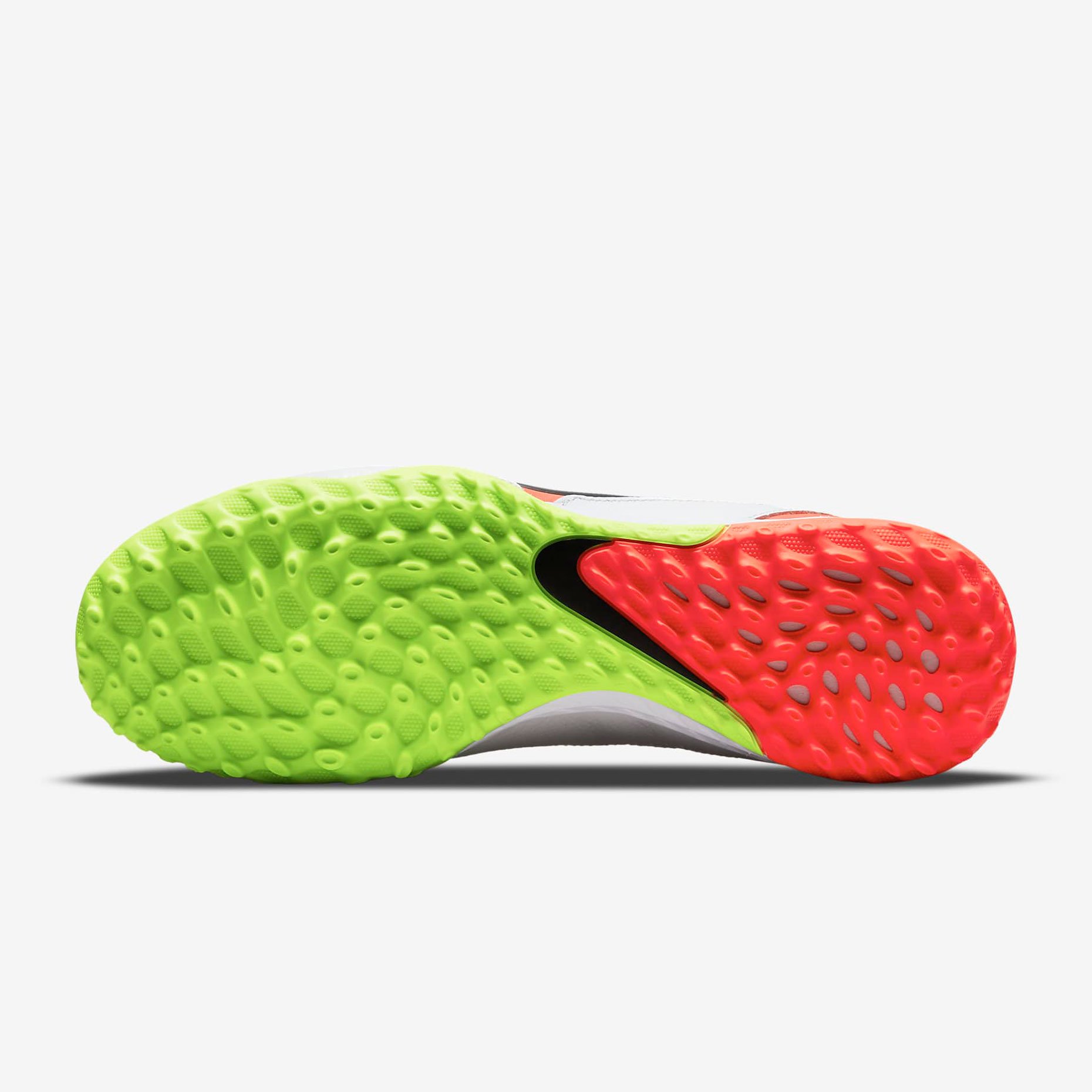 Шиповки Nike React Tiempo Legend 9 Pro TF — одна из самых легких на сегодняшний день моделей линейки Tiempo. Эти шиповки позволяют перейти в наступление благодаря низкопрофильной конструкции, адаптированной для нападающих. Верх с рельефной текстурой дополнен мягкими подушечками из пеноматериала для точного дриблинга, передач и бросков, а упругий пеноматериал Nike React амортизирует при каждом шаге, позволяя обходить соперников.