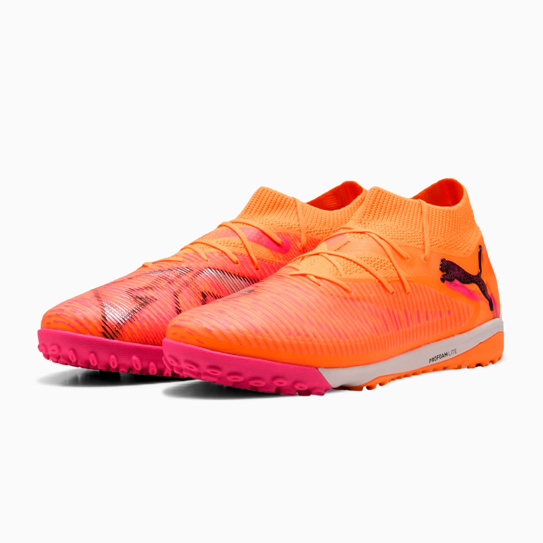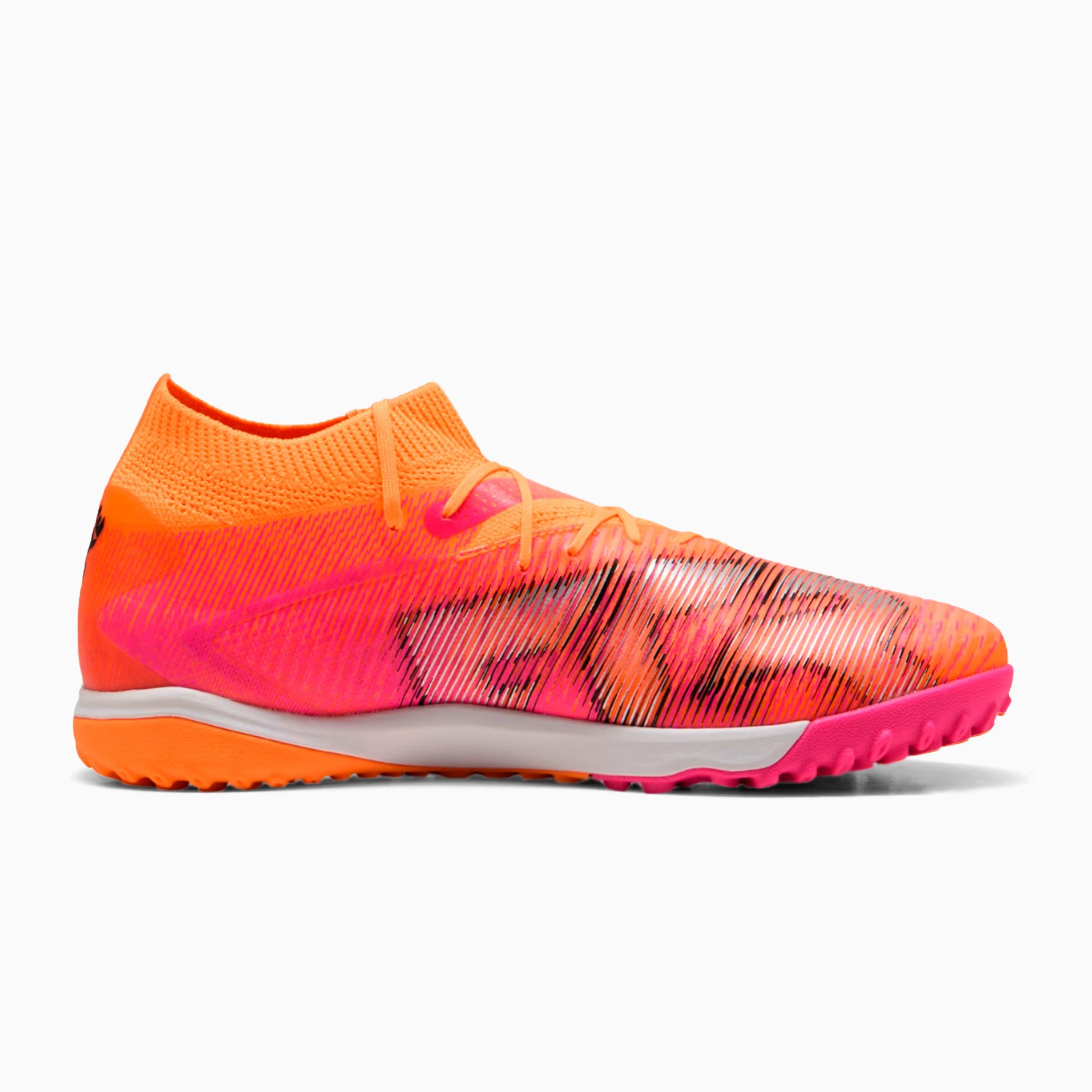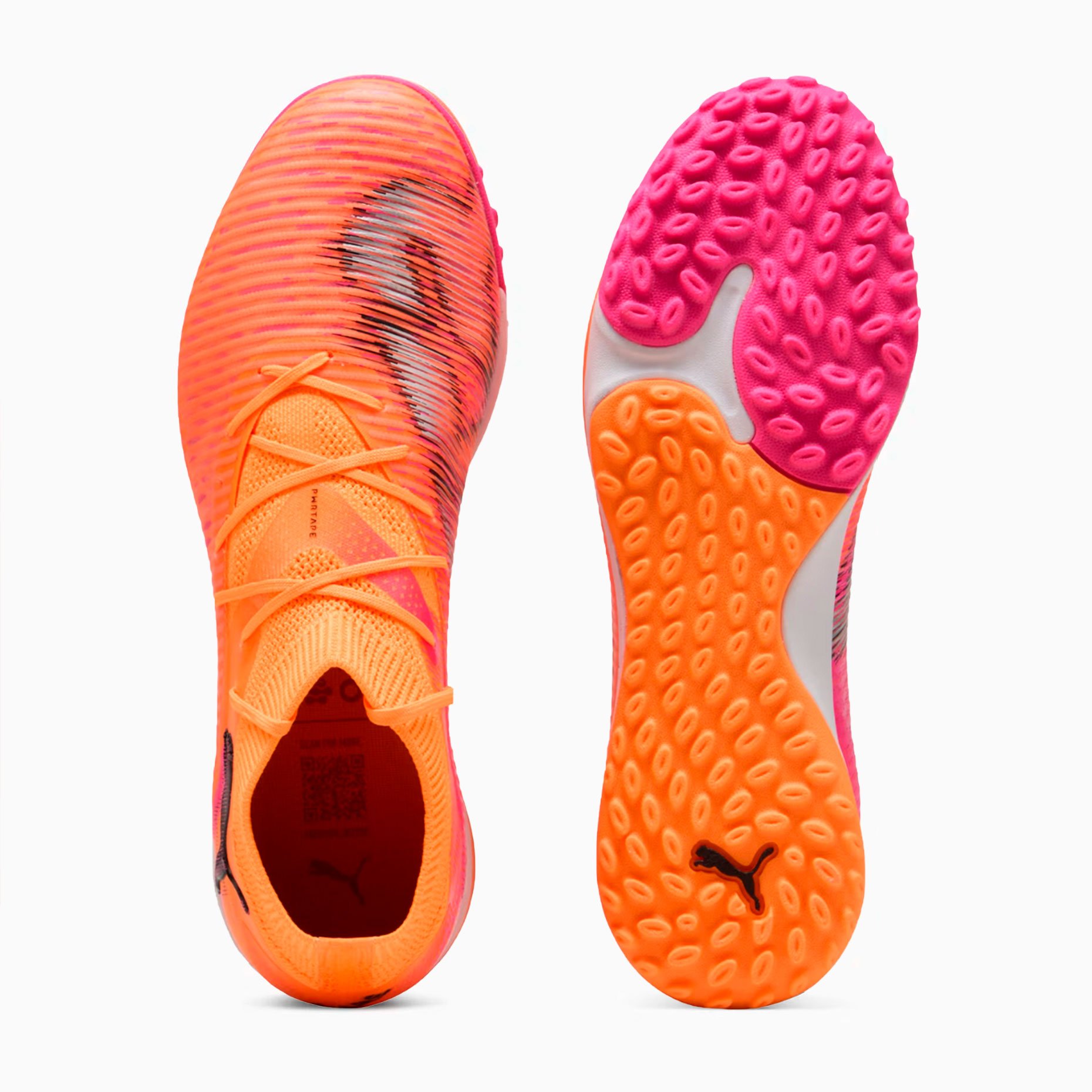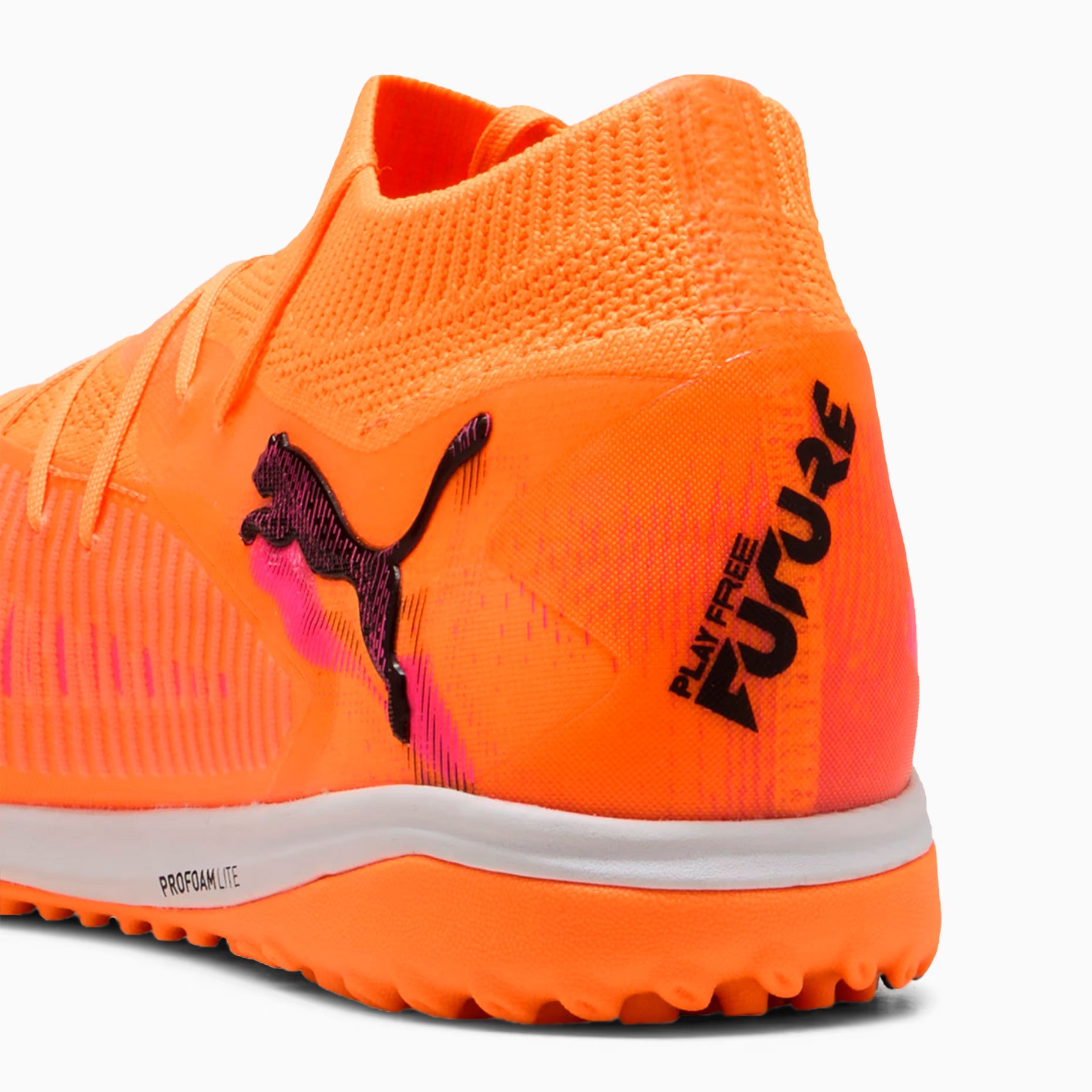 Шиповки Puma Future 8 Pro Cage TF – отличный выбор для игры на искусственных покрытиях и твердых полях. Их верх FUZIONFIT360, изготовленный не менее чем на 30% из переработанных материалов, сочетает в себе четырехстороннюю эластичную трикотажную основу и эластичный вязаный воротник, обеспечивая гибкую, надежную и поддерживающую посадку. Прокладка PWR в средней части стопы усиливает фиксацию и стабильность, а технология GripControl и рельефные линии сетки улучшают сцепление с мячом и контроль.