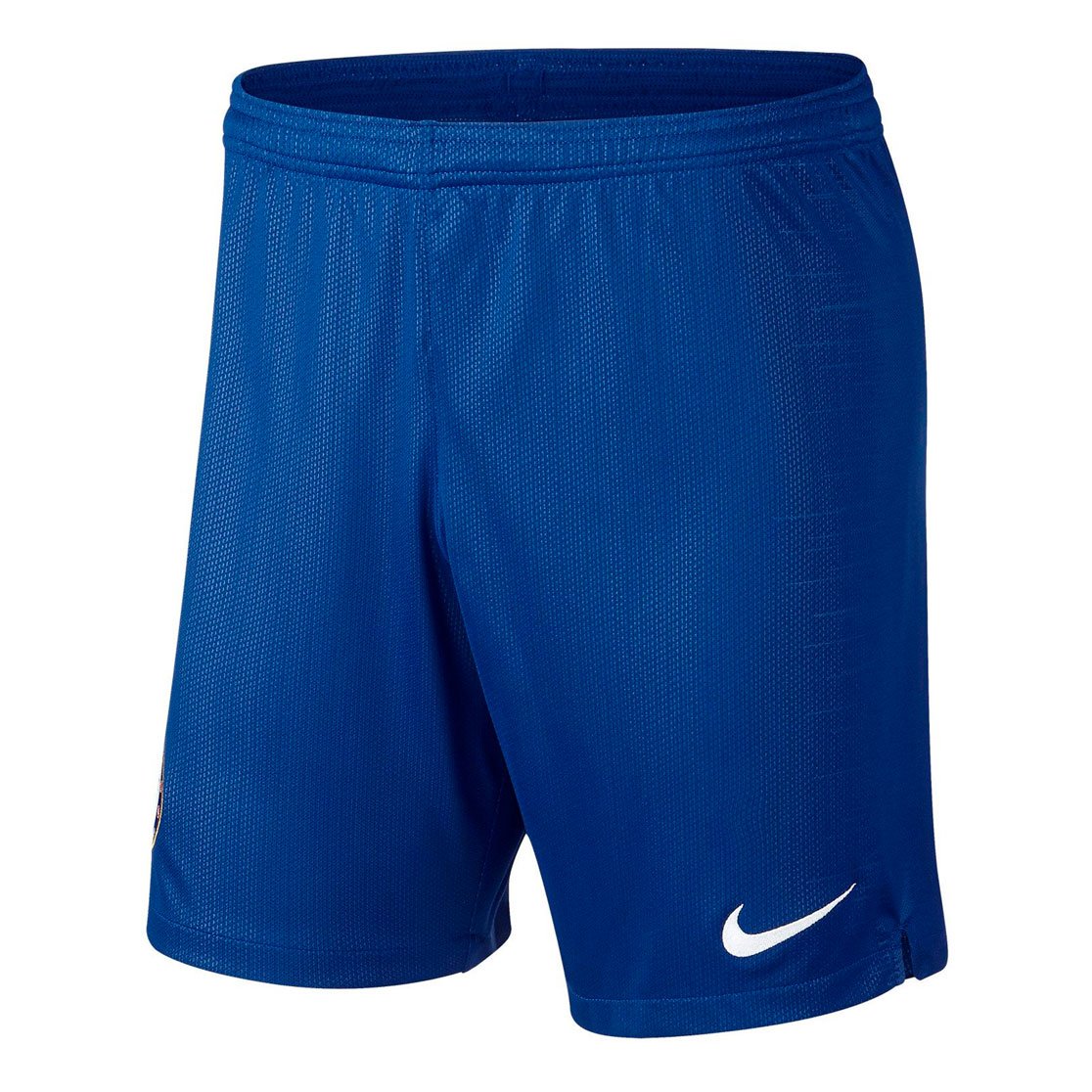 Домашние игровые шорты Nike ФК «Челси» 2018/19 – экипировка, которая обеспечивает максимальный комфорт игроку любого уровня. Они изготовлены из воздухопроницаемой ткани с применением технологии Dri-FIT. Легкий и приятный на ощупь материал выводит лишнюю влагу наружу и дарит ощущение прохлады. Их дизайн не позволит остаться незамеченным на игровом поле и за его пределами. Шорты не сковывают движений и позволяют двигаться еще быстрее, добиваясь лучших результатов.