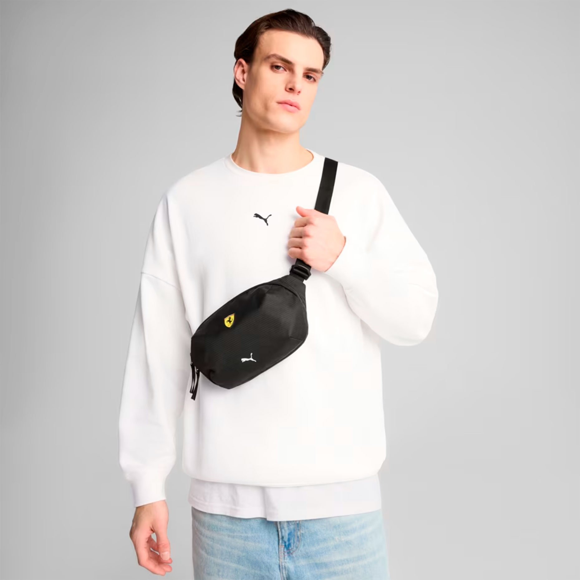 Сумка на пояс Puma Scuderia Ferrari Race Waist Bag — это стильный аксессуар для поклонников автоспорта, который сочетает в себе функциональность и спортивный дизайн. Компактная модель с фирменным логотипом Scuderia Ferrari может носиться как на поясе, так и через плечо, что делает её универсальным решением для активного образа жизни.