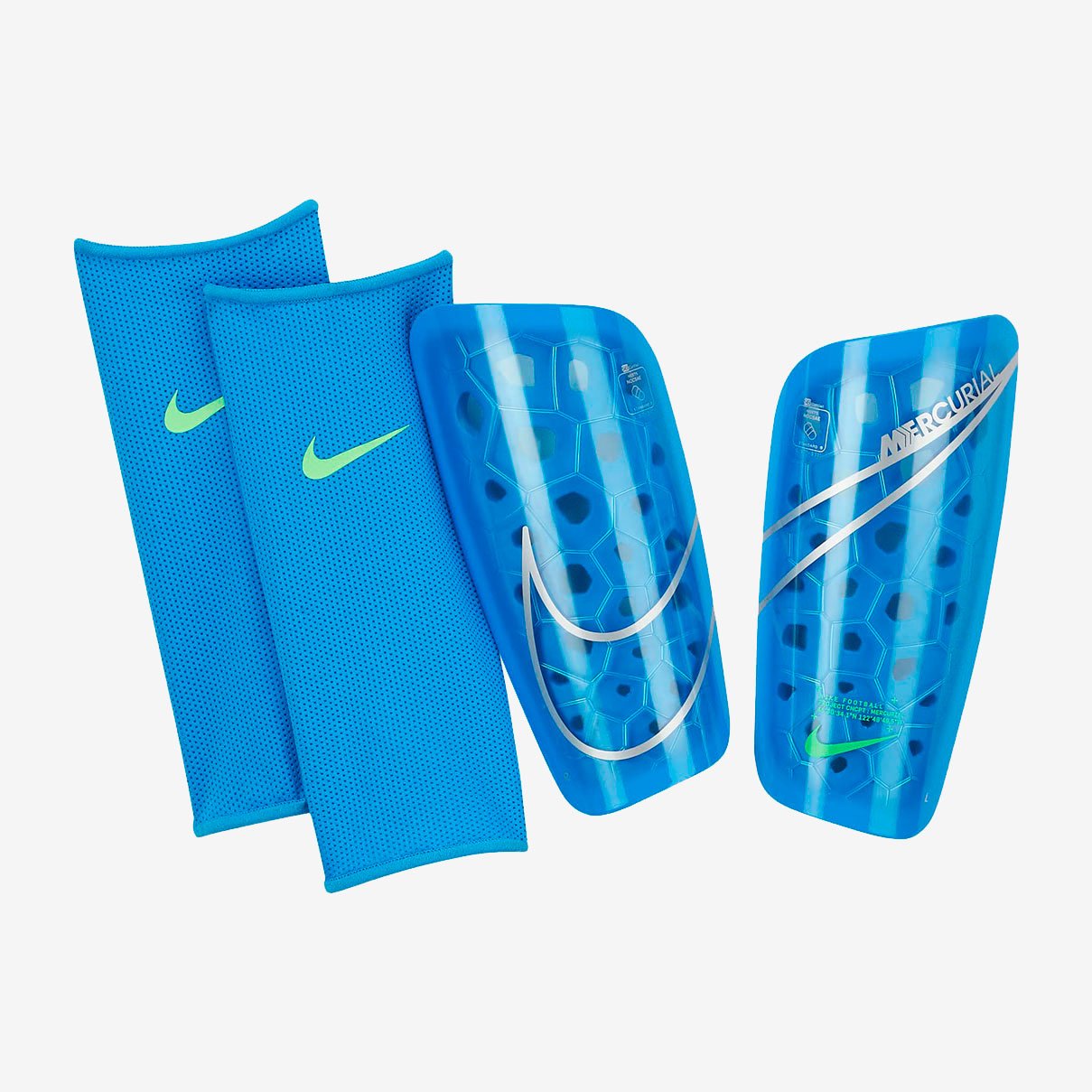 Щитки Nike Mercurial Lite обеспечивают комфортную амортизацию, а легкий рукав надежно фиксирует прочный каркас. Минималистичная анатомическая конструкция для левой и правой ноги с перфорированным пеноматериалом повышает воздухопроницаемость.