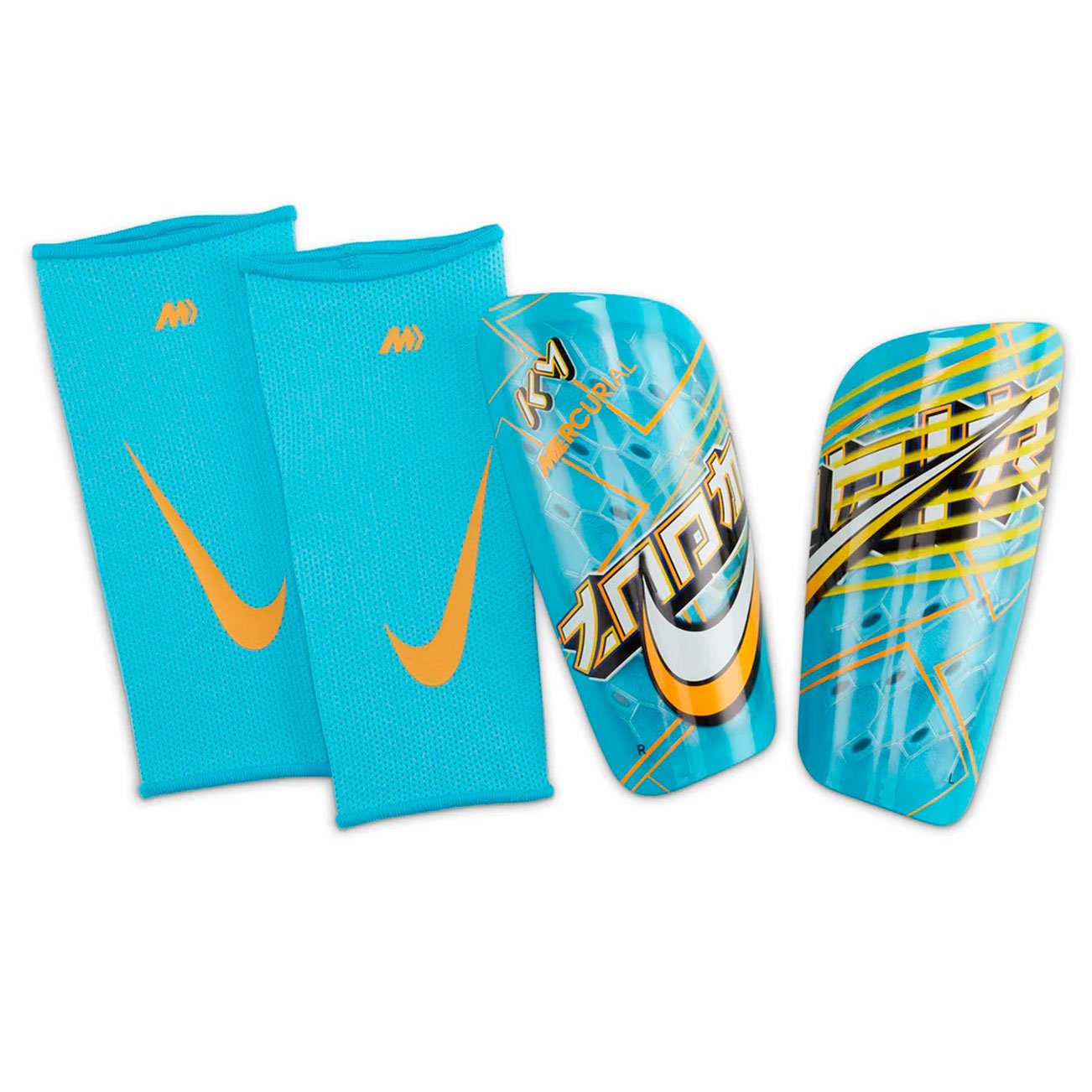 Щитки Nike Mercurial Lite обеспечивают комфортную амортизацию, а легкий рукав надежно фиксирует прочный каркас. Минималистичная анатомическая конструкция для левой и правой ноги с перфорированным пеноматериалом повышает воздухопроницаемость.
