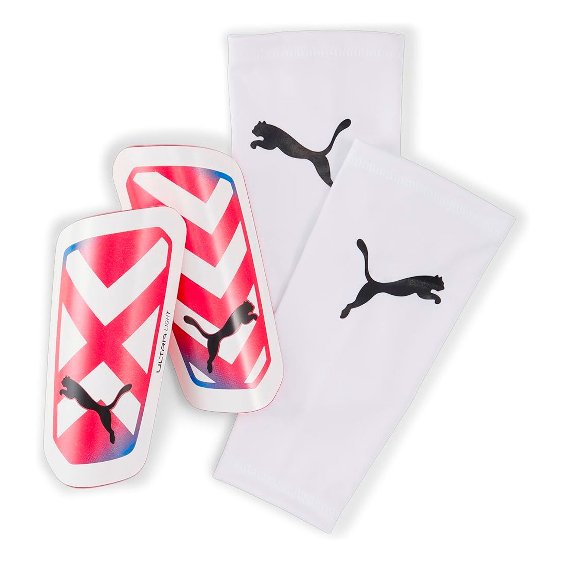Щитки Puma ULTRA защищают ноги во время игр и тренировок. Имеют сверхлегкую конструкцию для максимальной маневренности. Прокладка из EVA эффективно поглощает удары, а вырезы уменьшают вес и улучшают циркуляцию воздуха. Входящие в комплект компрессионные рукава надежно фиксируют щитки на ноге.