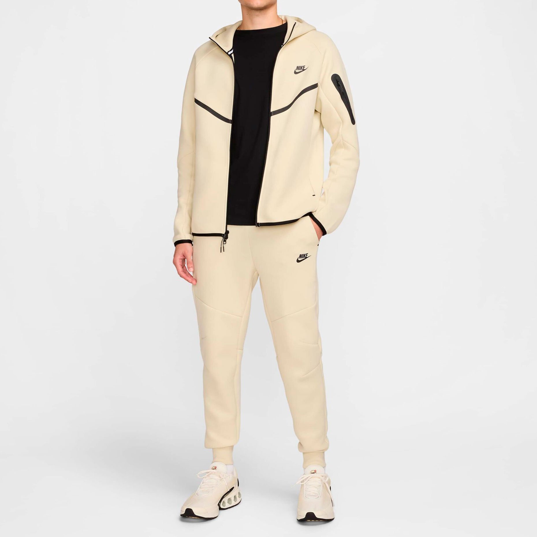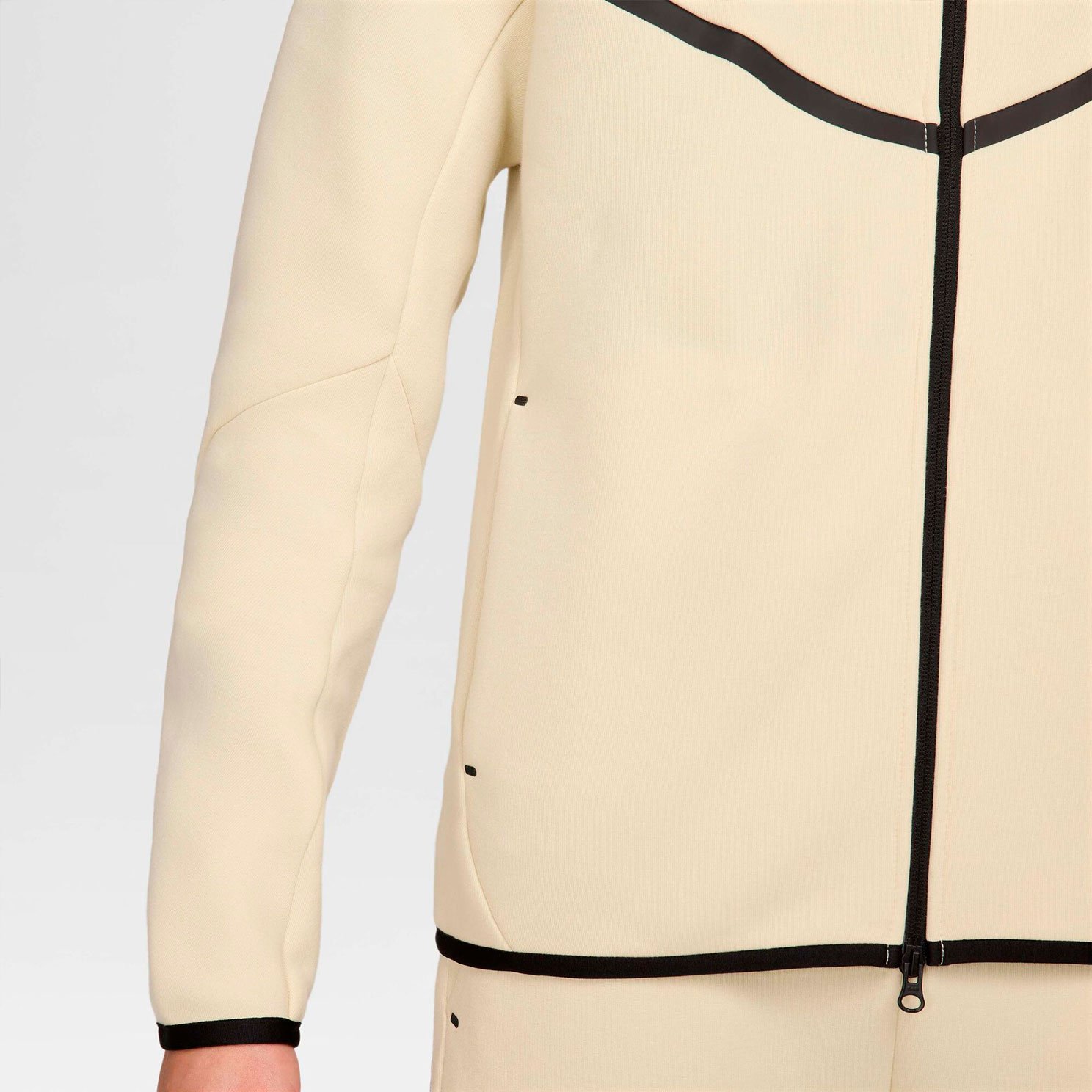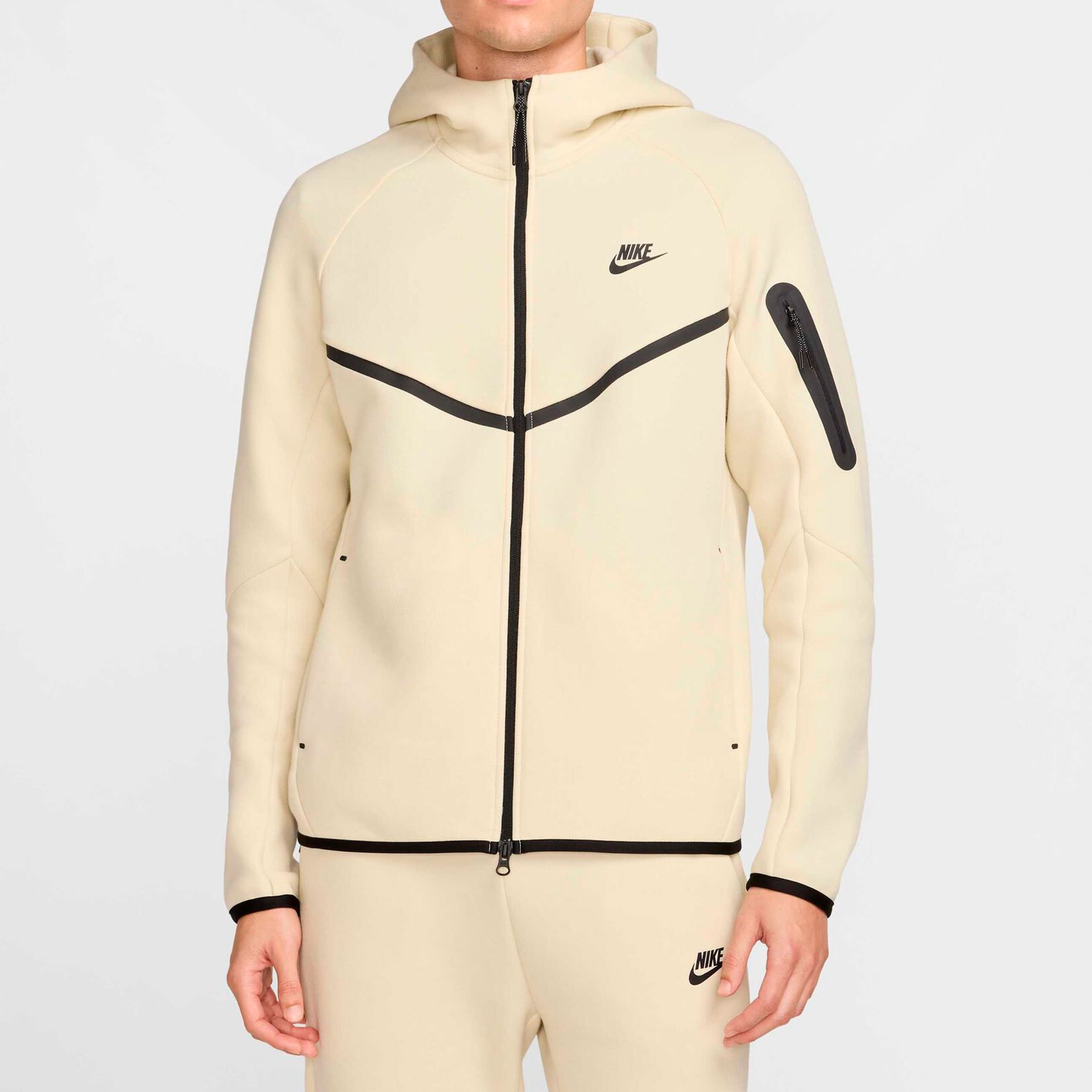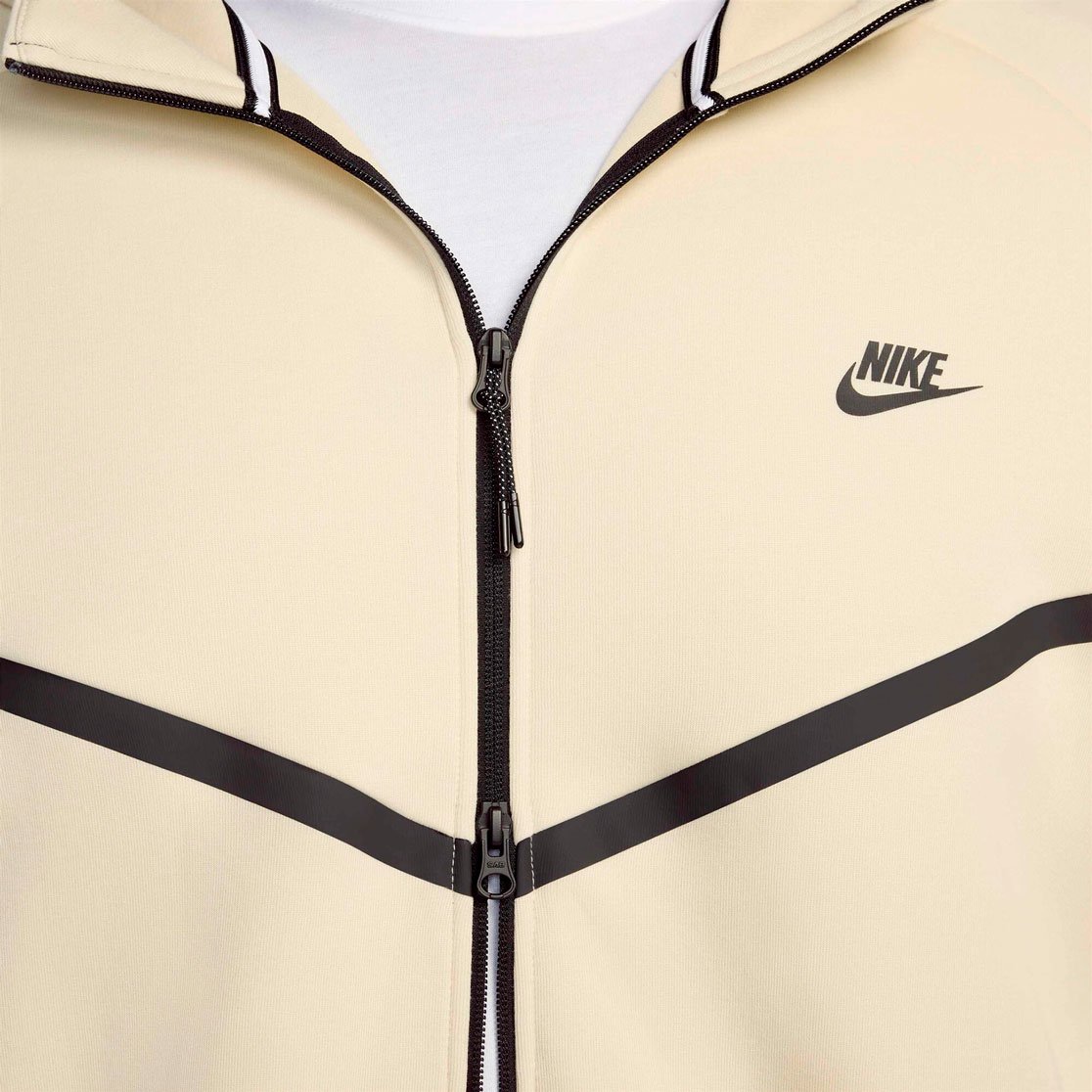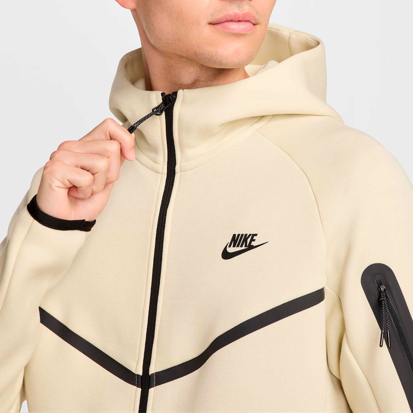 Толстовка выполнена в стандартном крое для комфортной посадки и удобства при носке. Дизайн дополнен характерными элементами: проклеенным шевроном в стиле оригинальной ветровки Windrunner, окантовкой подола и манжет. Практичность модели подчеркивают функциональные детали: двойная молния для удобства использования, удобный капюшон с высоким воротником, боковые карманы на молниях и дополнительный карман на рукаве с застежкой-молнией.