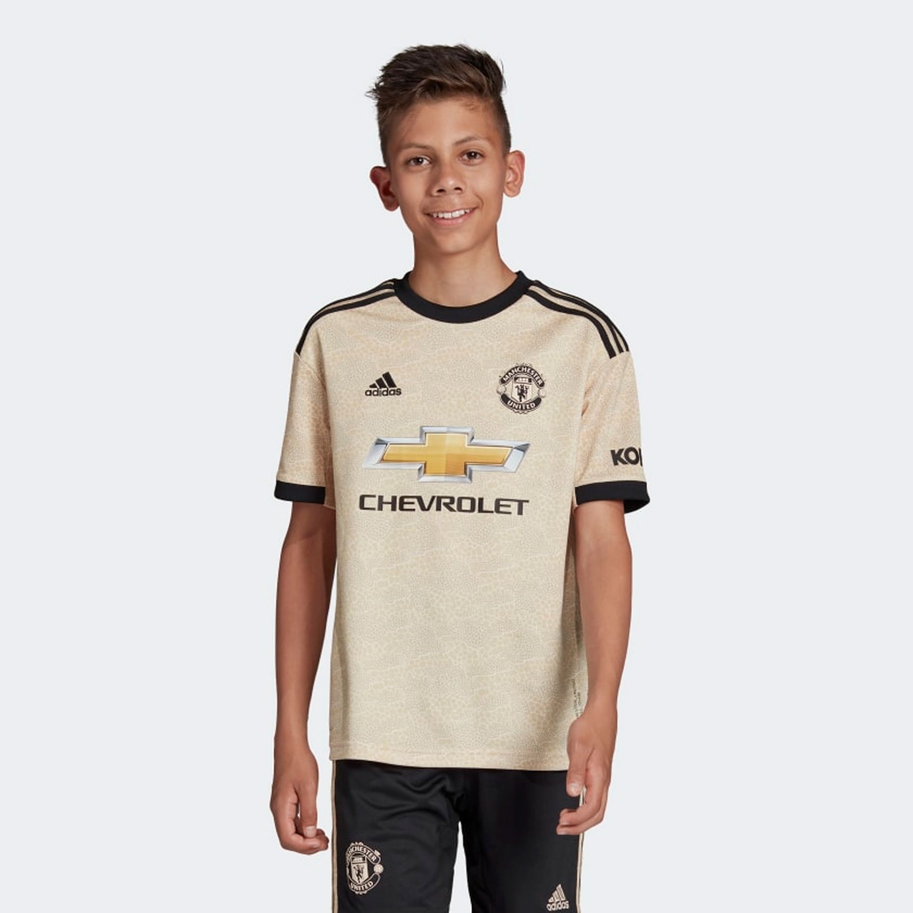 Выездная детская игровая футболка adidas ФК «Манчестер Юнайтед» 2019/20 - это футбольная форма Манчестер Юнайтед в сезоне 2019/20 для выездных матчей. Эта футболка имеет бежевый цвет с черными полосами на плечах и черным логотипом adidas и эмблемой клуба на груди. Футболка сделана из высококачественного полиэстера с технологией ClimaCool, которая обеспечивает вентиляцию и комфорт во время игры. Футболка также имеет круглый воротник и короткие рукава.