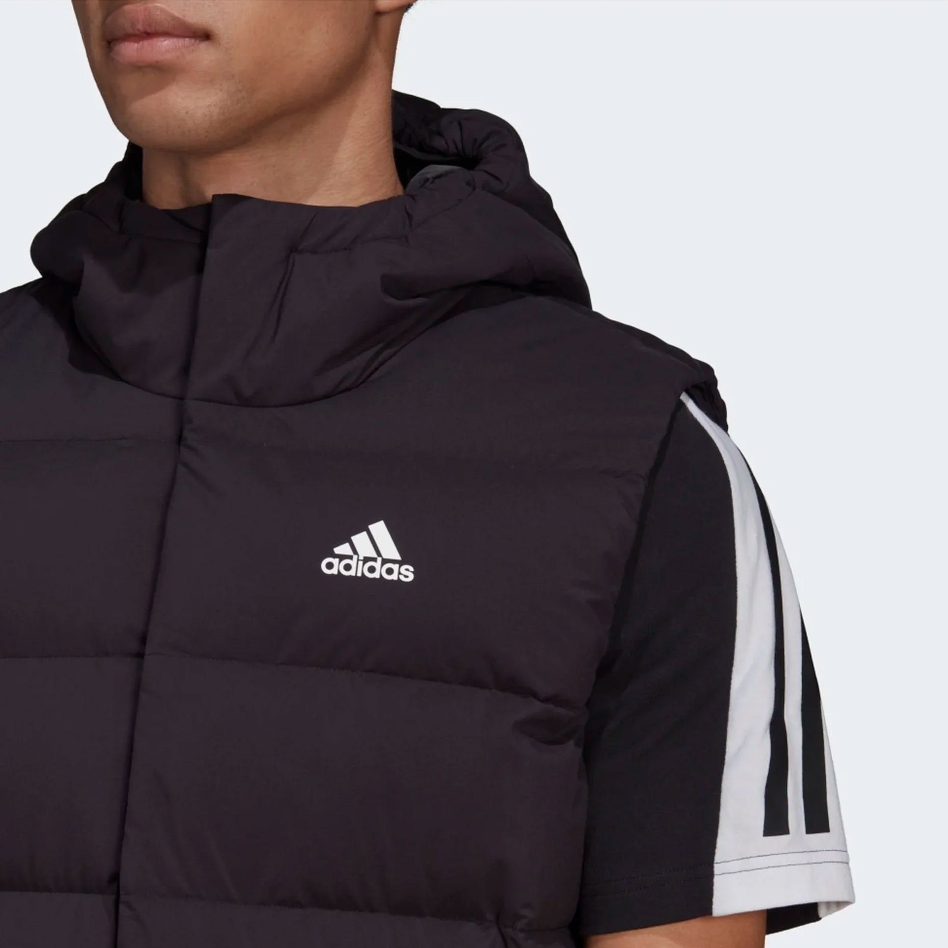 Влагоотталкивающее покрытие PFC-free и функциональные детали обеспечивают дополнительную практичность и долговечность изделия. Плотно прилегающий капюшон с эластичными вставками и передние карманы на молнии создают максимальный комфорт при использовании, а скрытая застёжка на пуговицах добавляет жилету элегантности и надёжной защиты от холода.