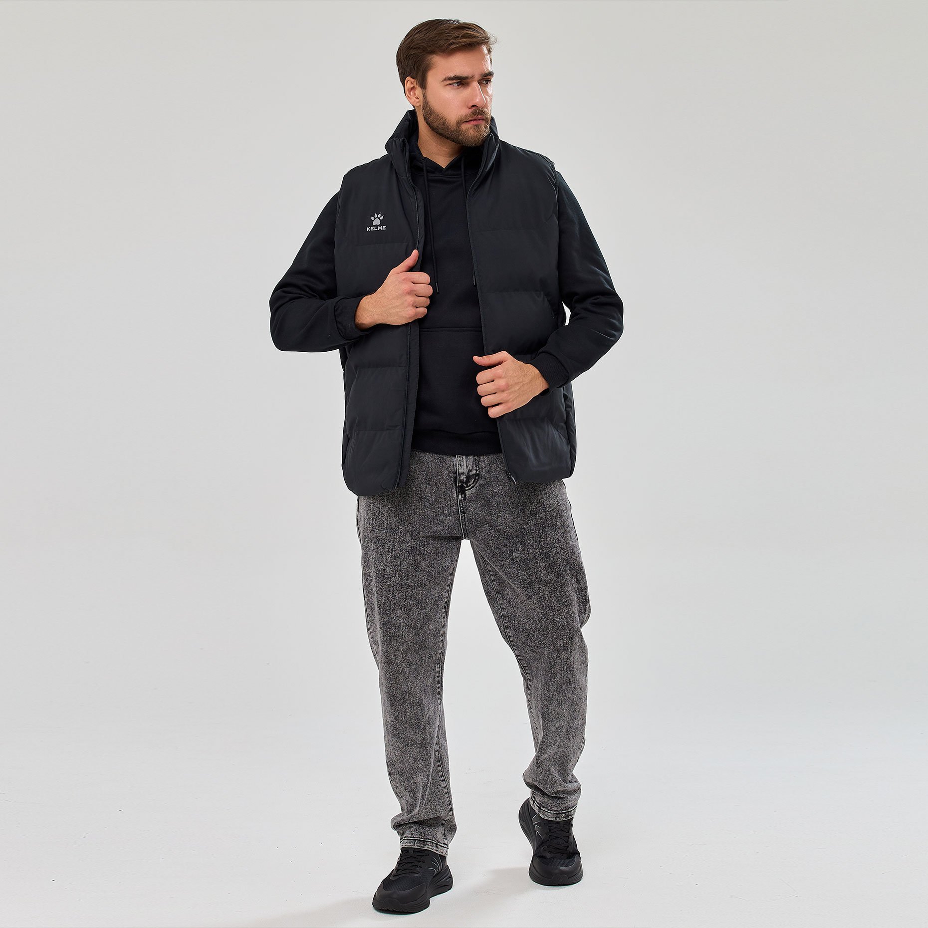Жилет Kelme Padded Vest — утеплённая модель для прохладной погоды, сочетающая функциональность и стильный дизайн. Плотная ткань с водоотталкивающей пропиткой надёжно защищает от лёгкого дождя, позволяя оставаться сухим в непогоду. Воротник‑стойка позволяет носить жилет вместе с худи или толстовкой с капюшоном, создавая многослойный образ. Наполнитель из полиэстера эффективно сохраняет тепло, обеспечивая комфорт.